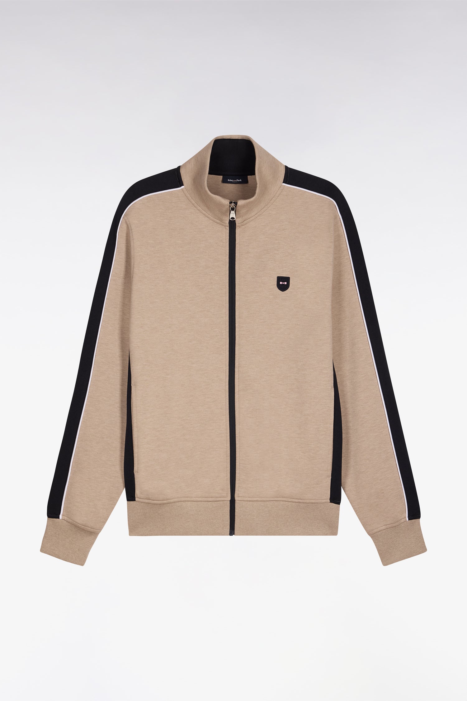 Sweatshirt zippé en interlock beige à découpes contrastées