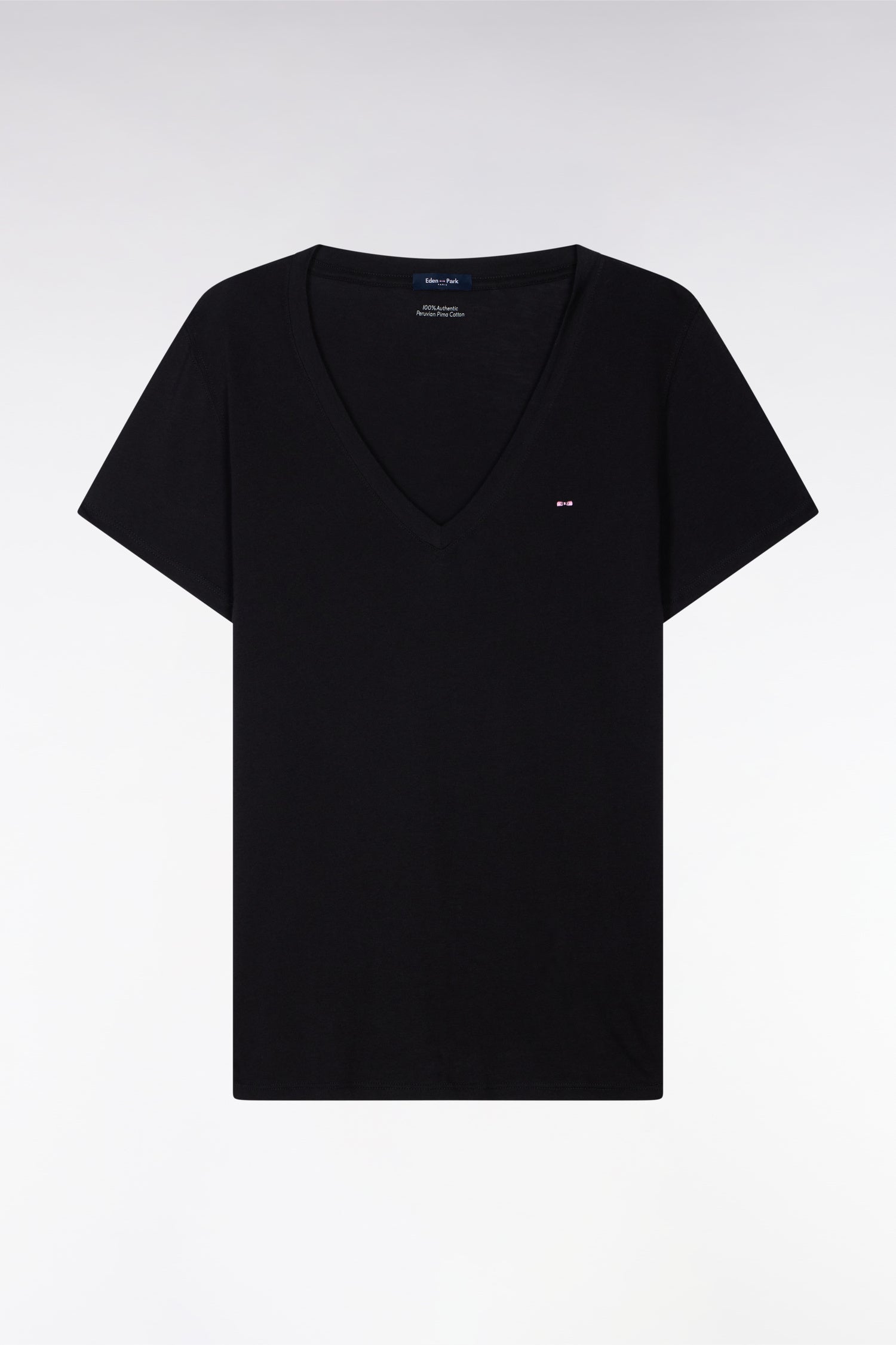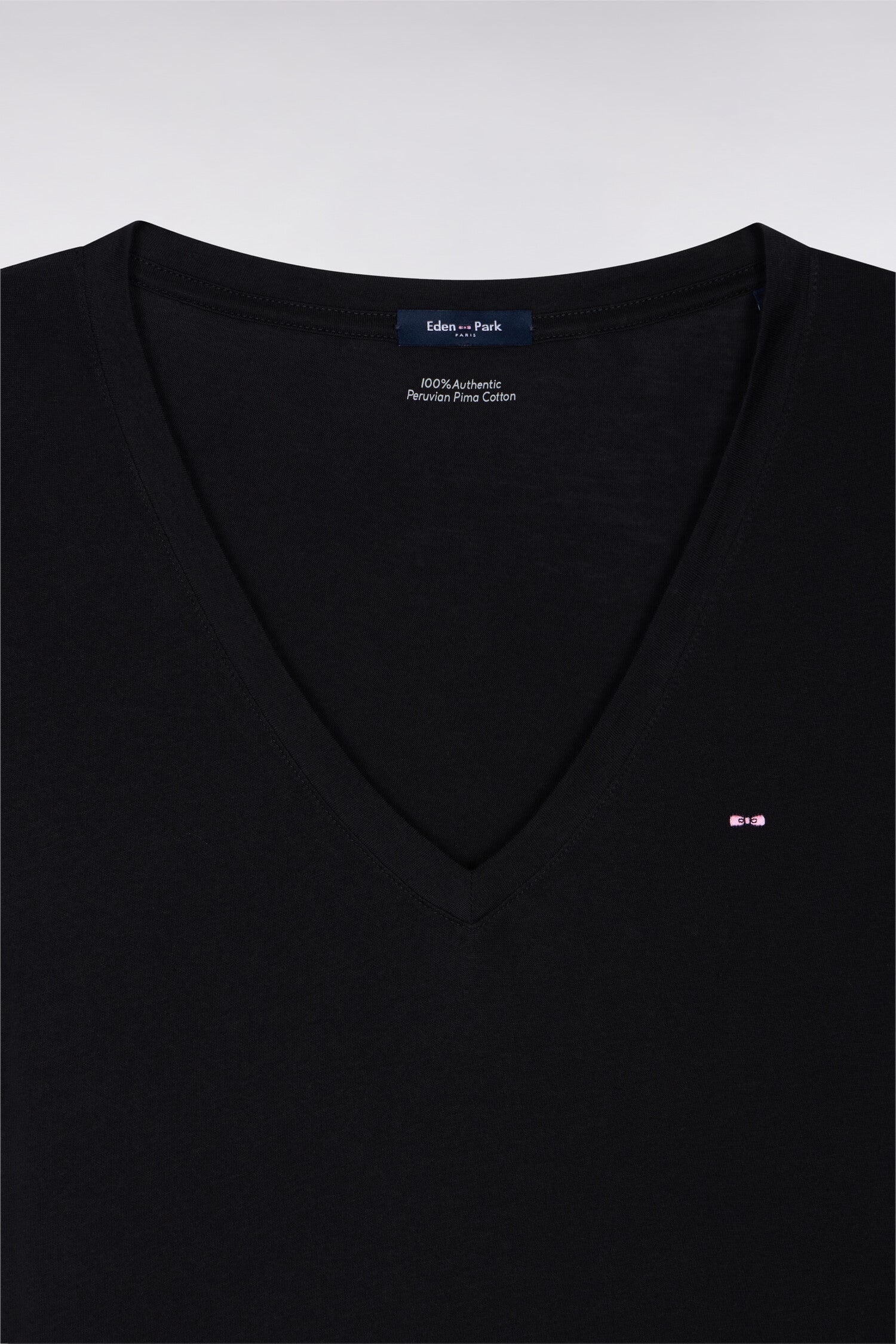 T-shirt à manches courtes col V en coton Pima noir coupe regular