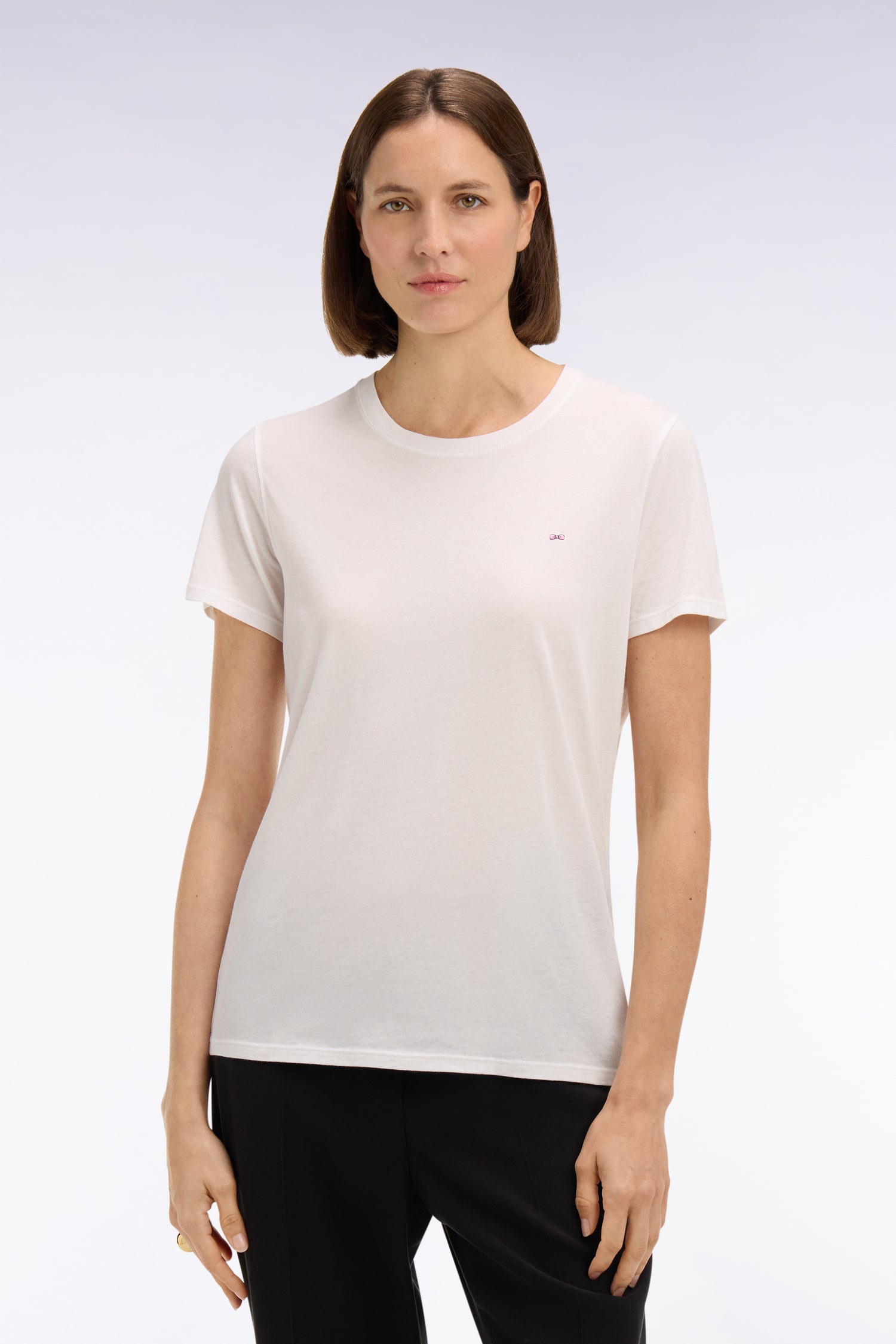 T-shirt à manches courtes en coton Pima blanc col rond coupe regular