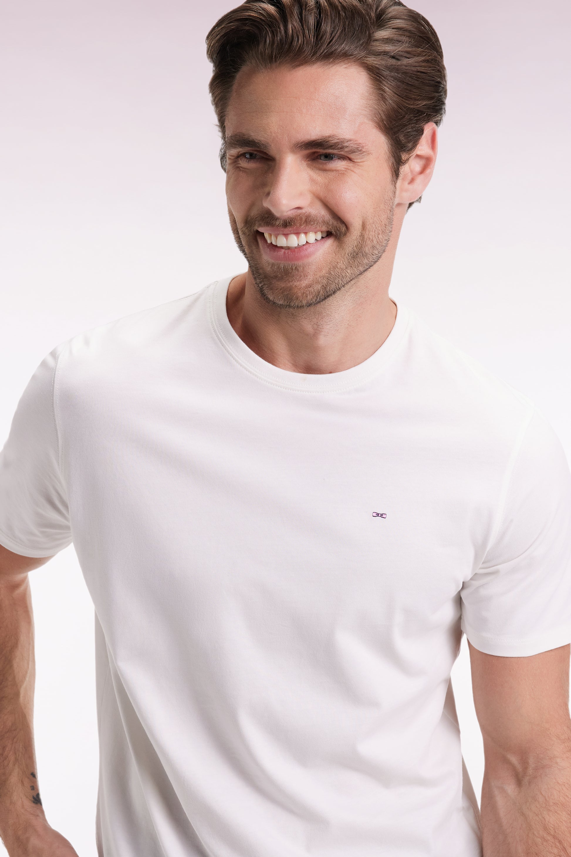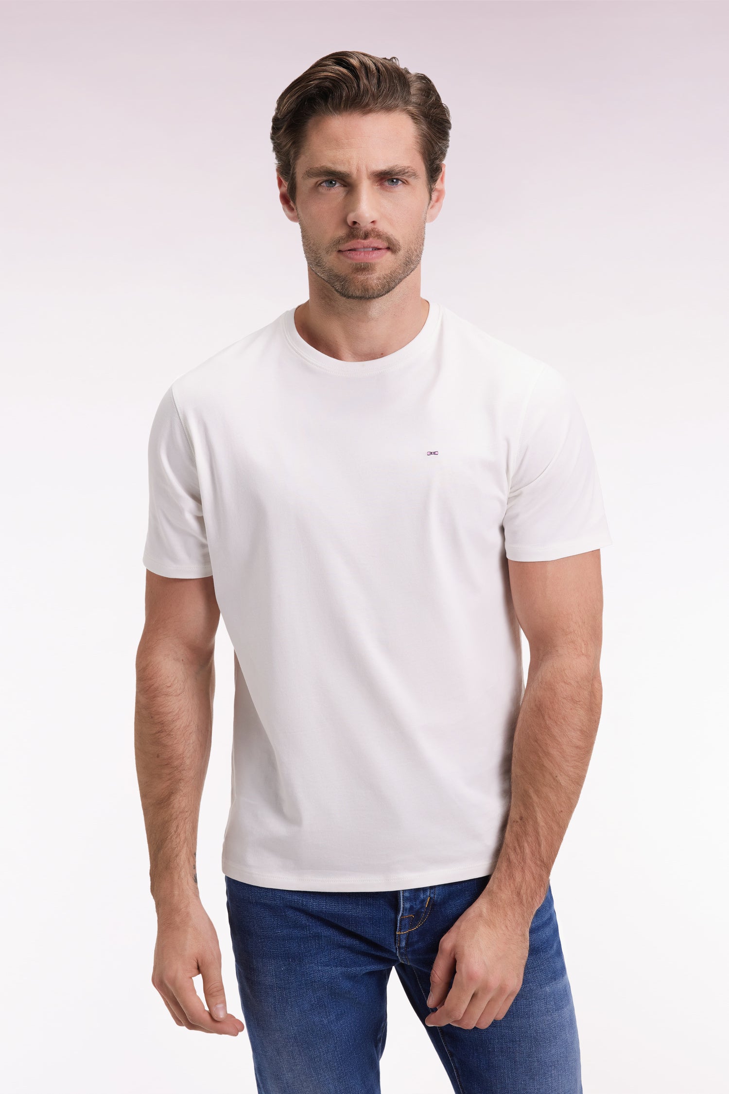 Short-sleeved round-neck T-shirt in ecru Pima cotton
