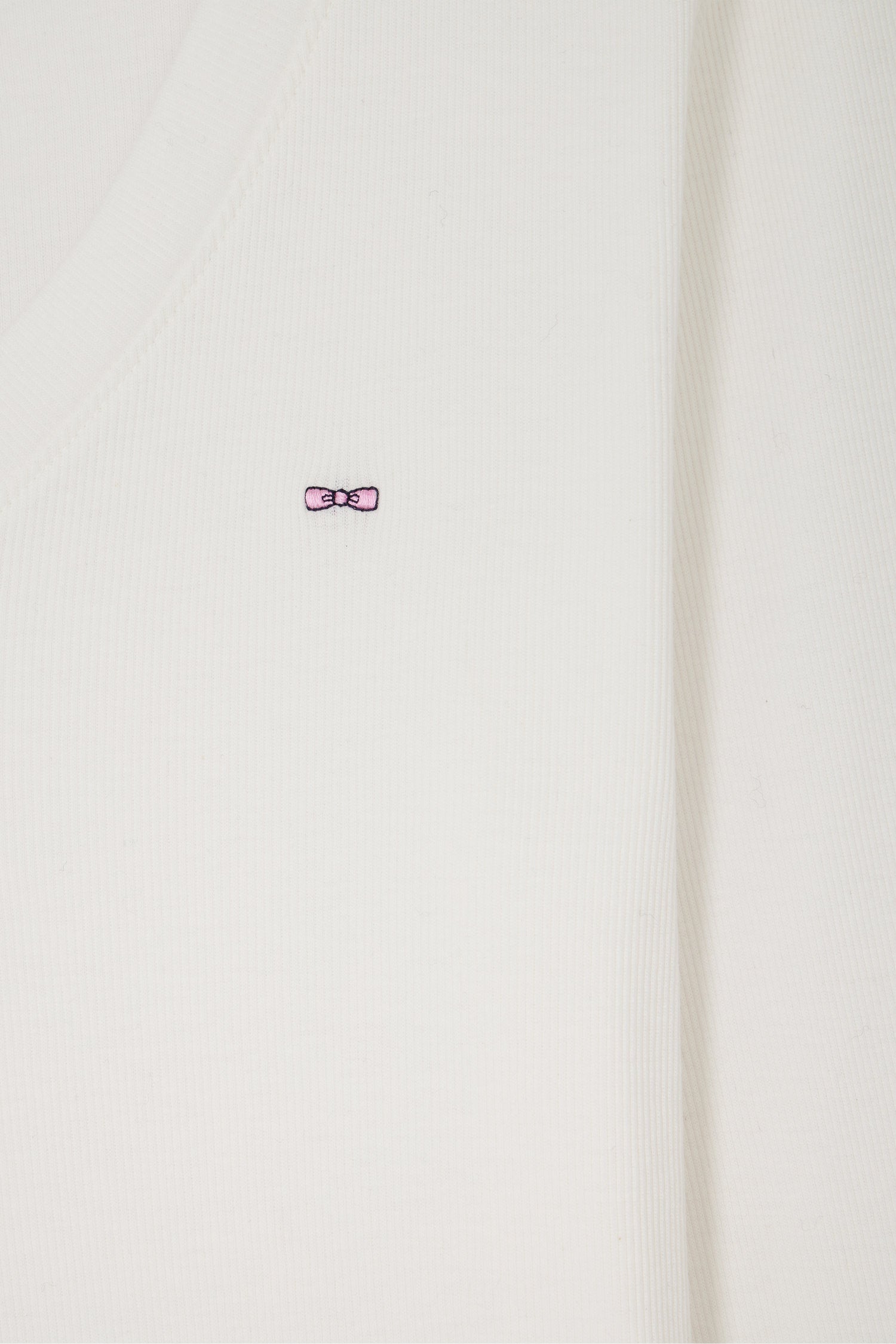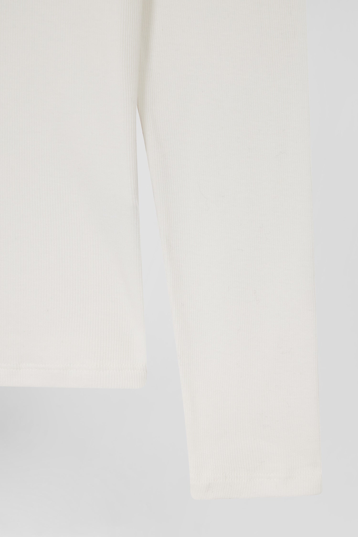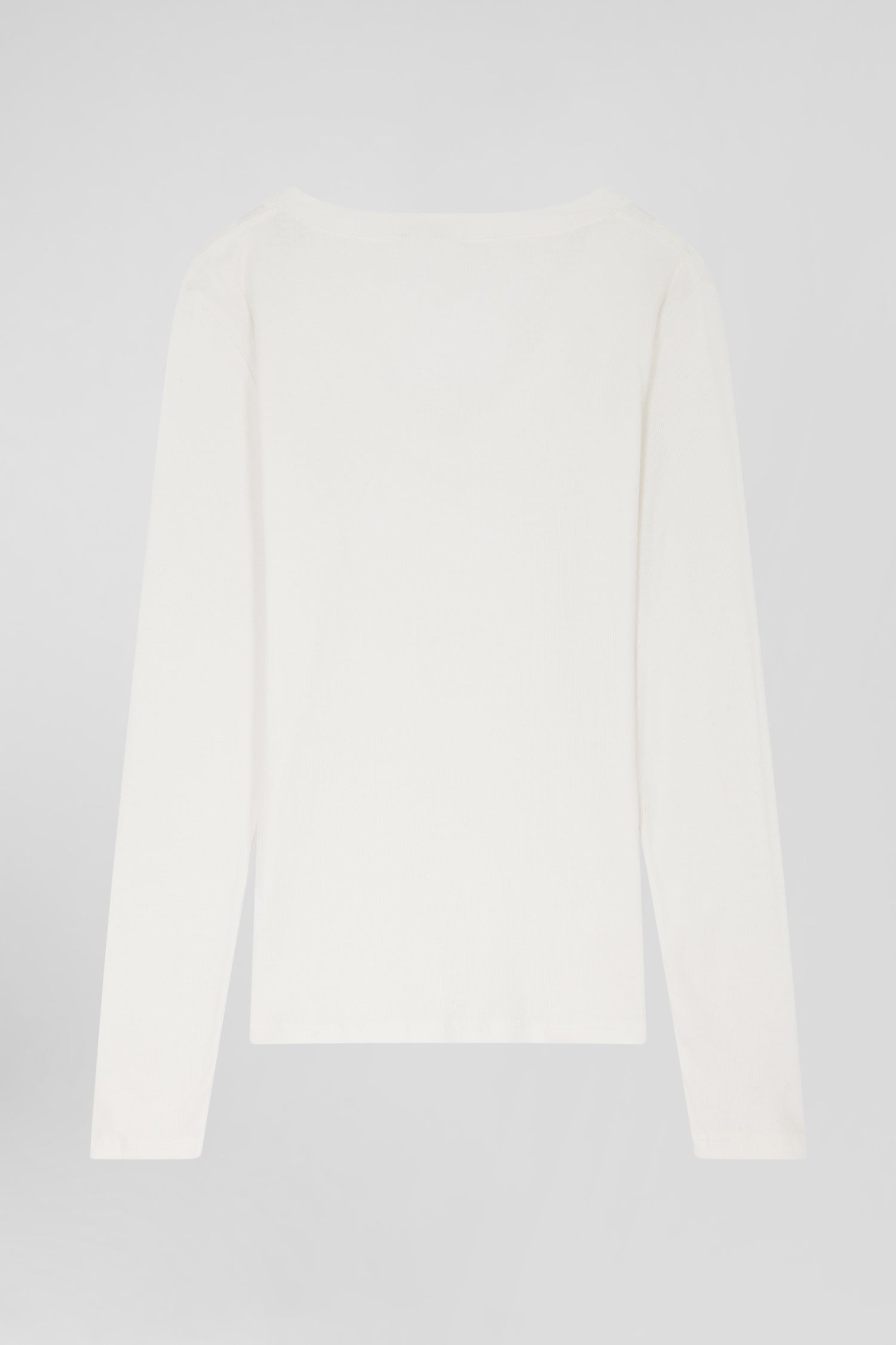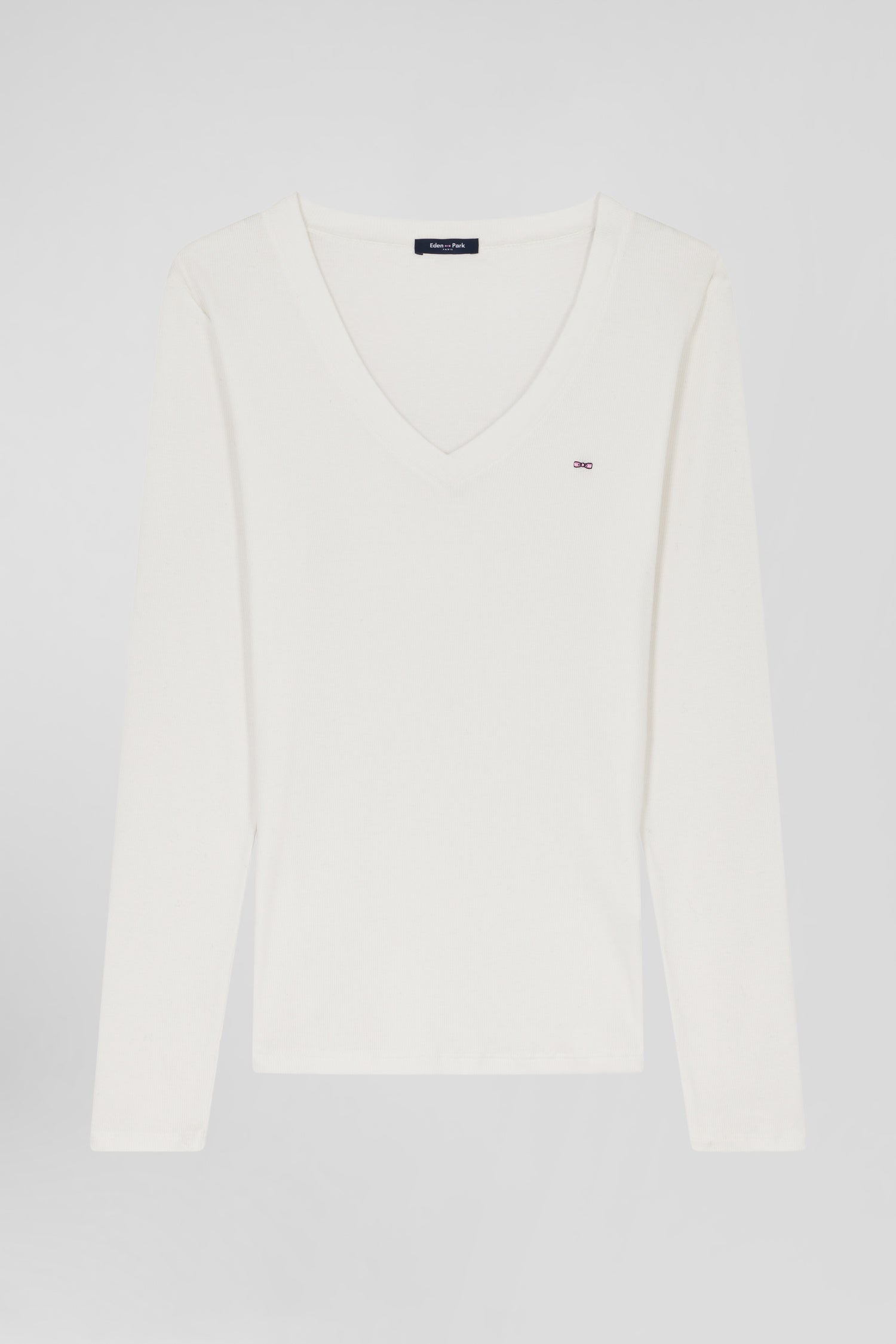 Slim ecru long-sleeved V-neck cotton T-shirt