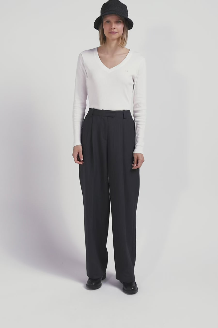 Opt for an elegant silhouette with our slim-fit V-neck T-shirt, available in navy or ecru. Made from 100% cotton, this feminine T-shirt perfectly combines comfort and style. Ideal for layering under a jacket or wearing on its own, this T-shirt is a versatile essential.