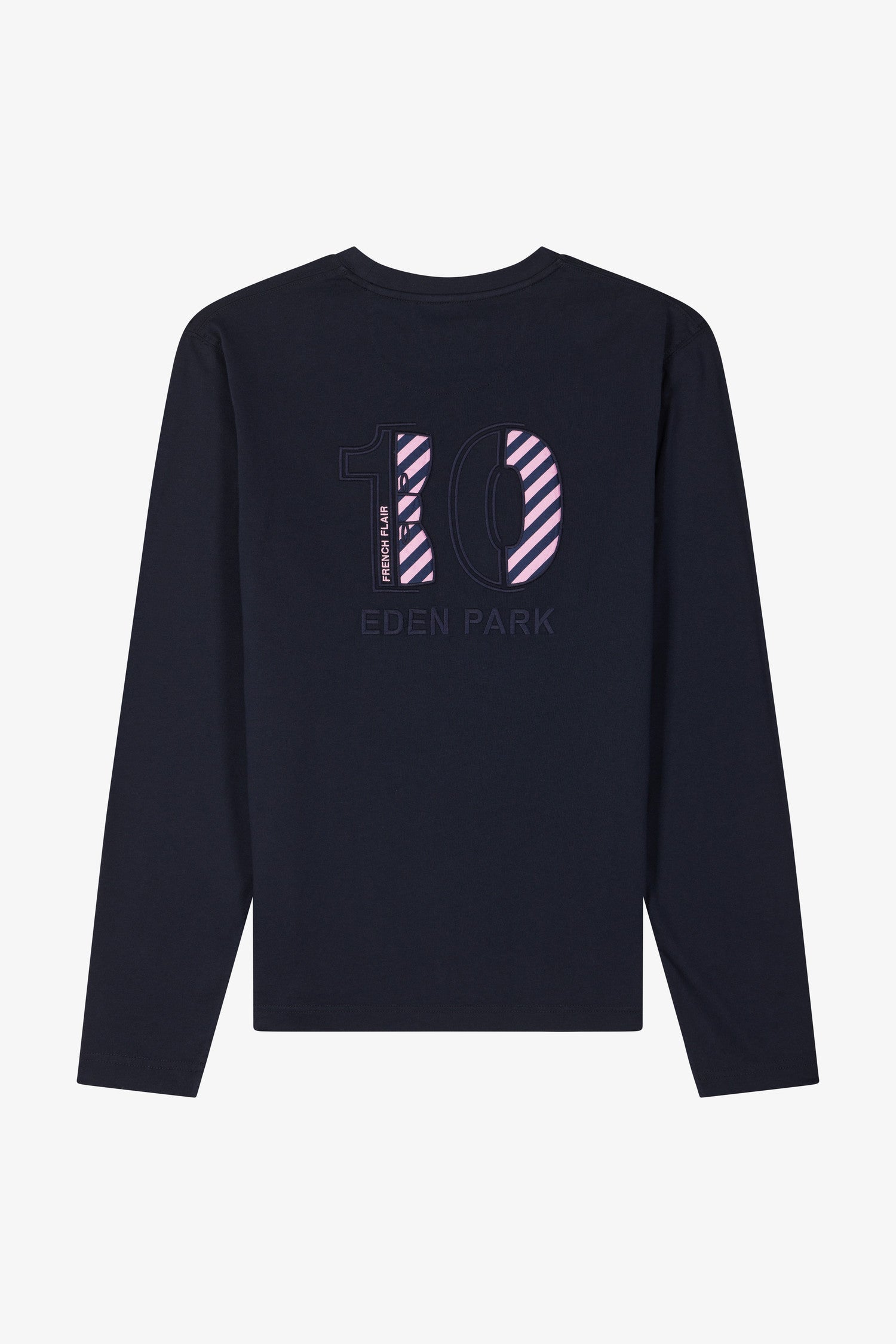 Regular navy long-sleeved cotton T-shirt with N°10 embroidery