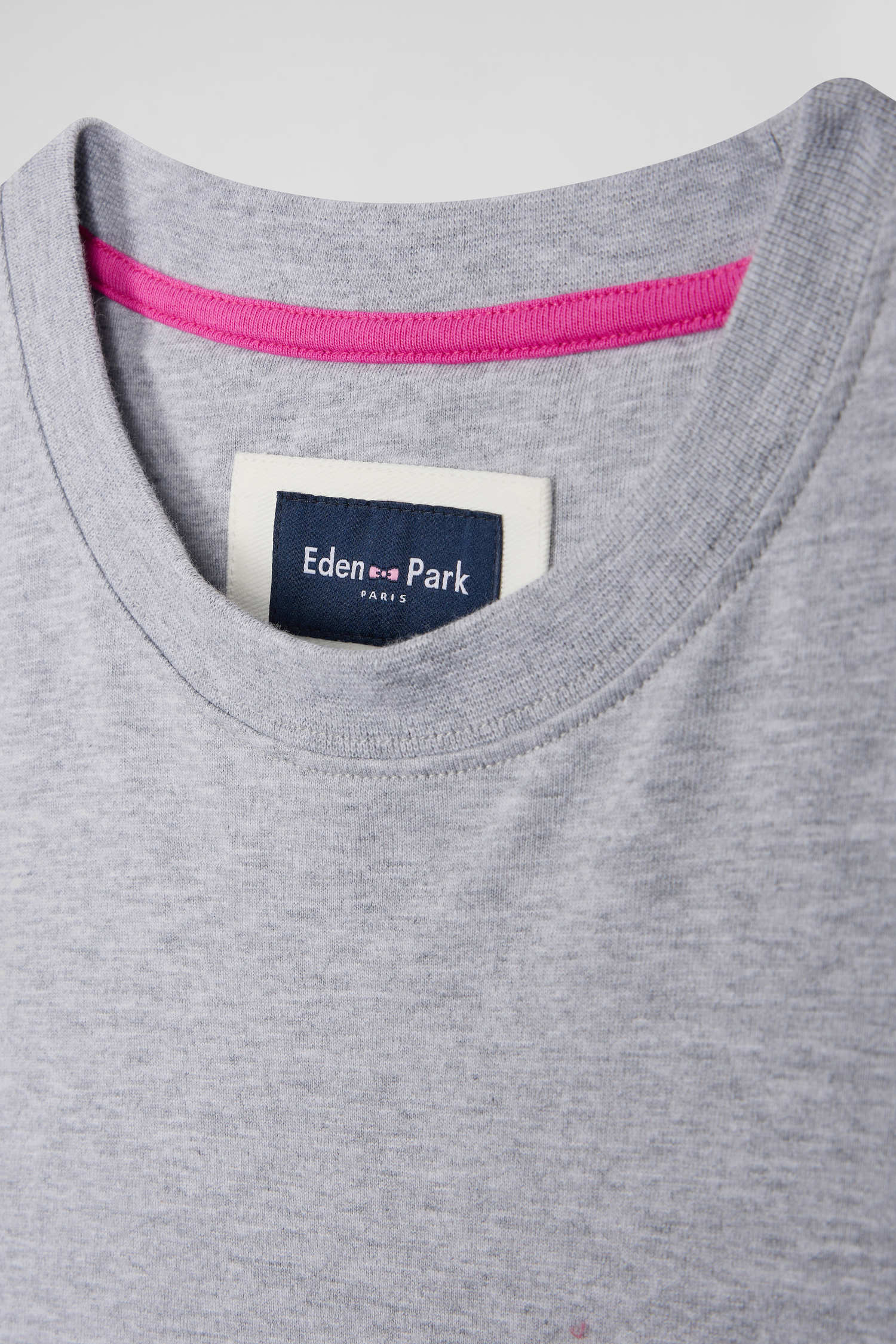An Eden Park emblem, this long-sleeved T-shirt features back embroidery combined with the application of tie fabric. On the front, a double bowtie embroidery marks this model. Available in gray or navy, this soft cotton jersey T-shirt can be combined with any style statement.