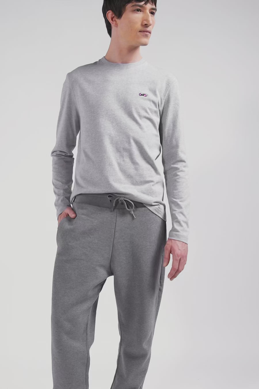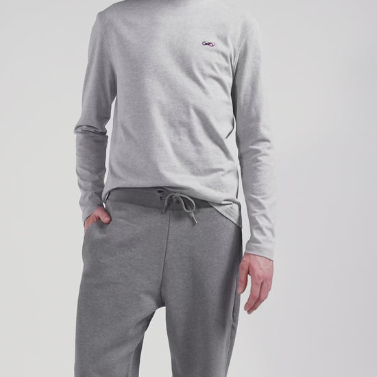 Regular grey long-sleeved cotton T-shirt with striped bow tie embroidery