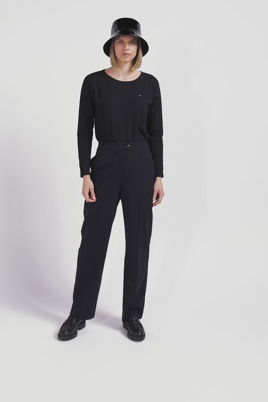 T-shirt manches longues à col rond en coton noir
