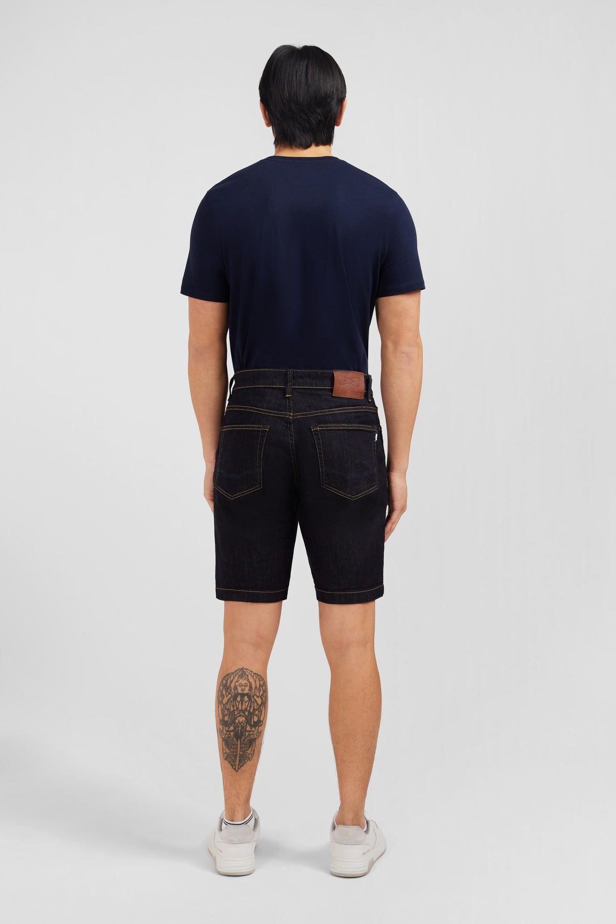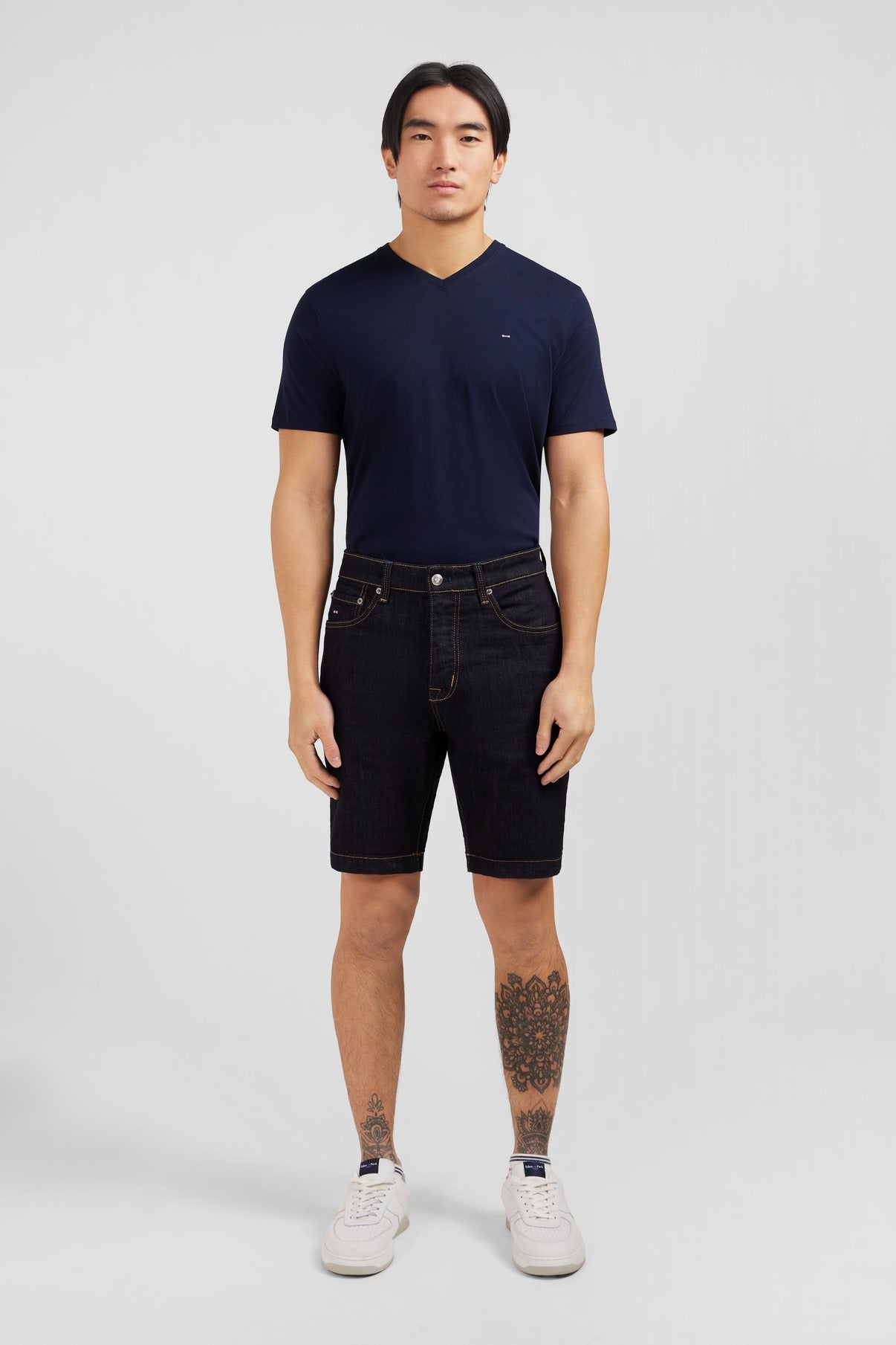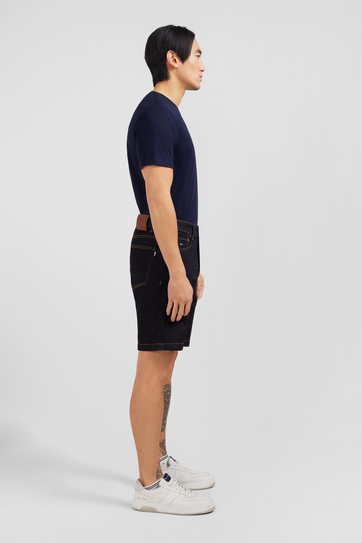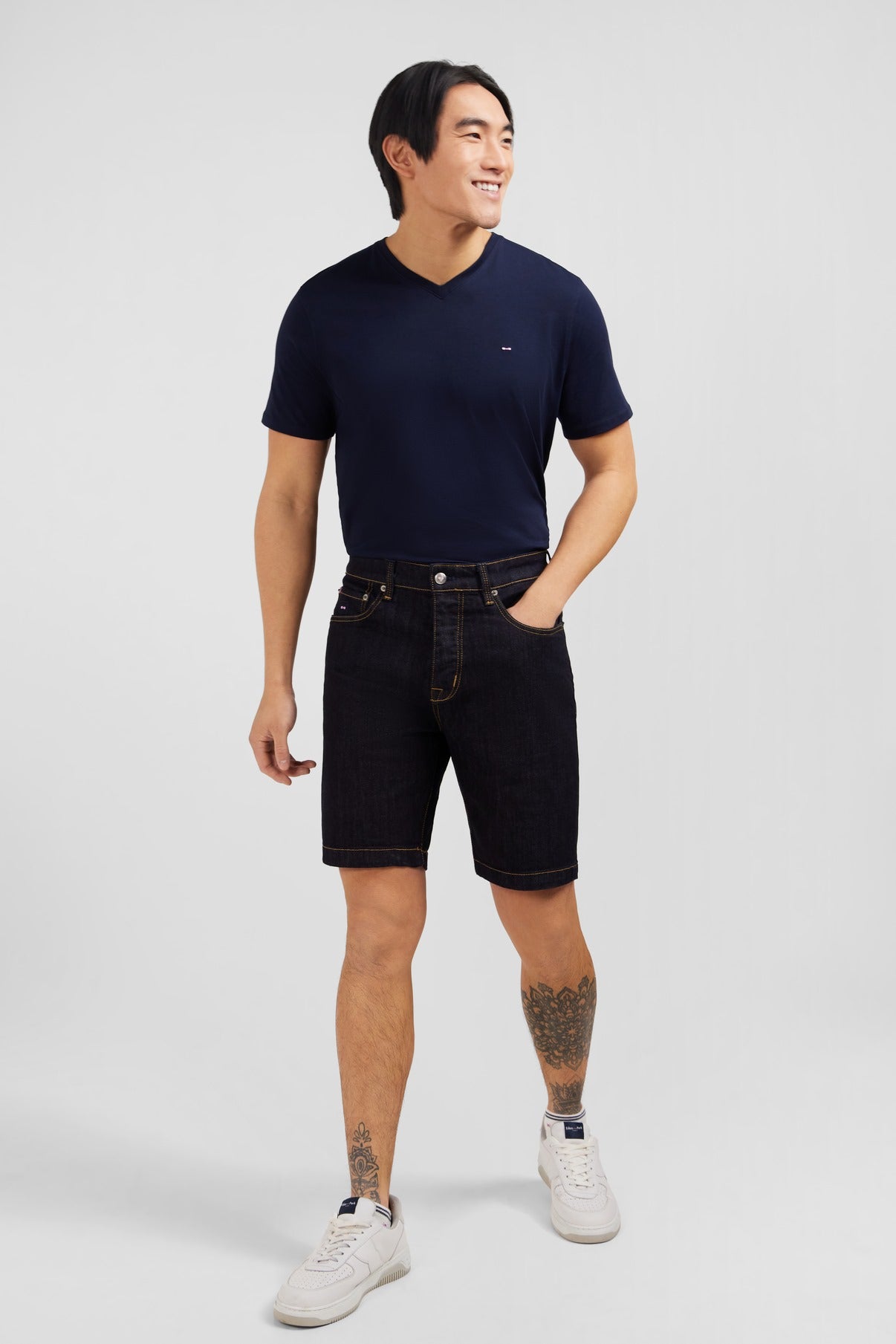 Ce bermuda en jean affiche un beau coloris brut, mis en valeur par des surpiqûres contrastées. On note le logo brodé en forme d'écusson au niveau de la poche ticket