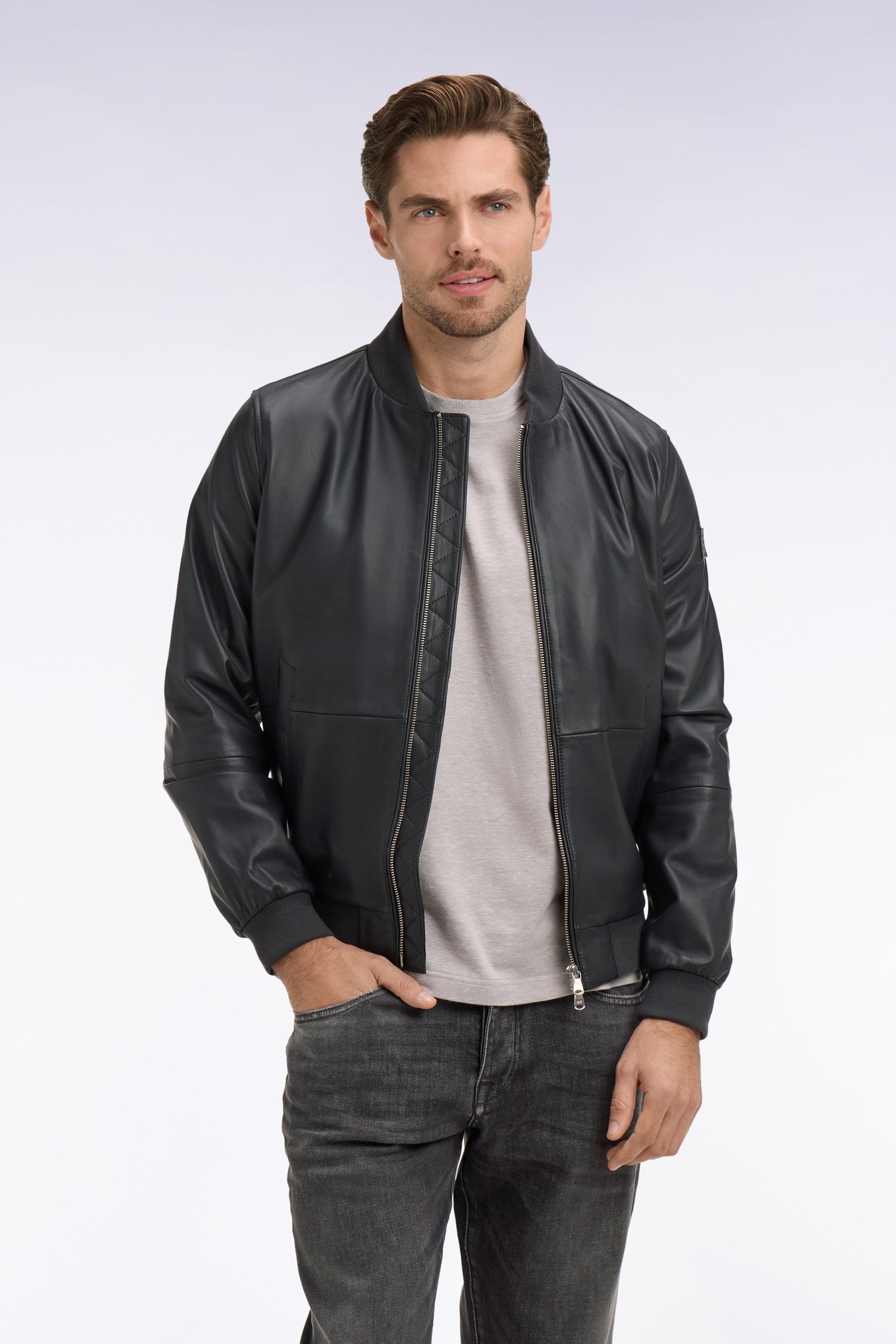 Pièce d’exception du vestiaire masculin, ce blouson façon bombers en cuir d'agneau lisse incarne tout le raffinement et le savoir-faire de notre Maison française. Sa coupe bombers est sublimée par une doublure à rayures rugby camaïeu et ses finitions soignées, des zips métallisés aux bords-côtes unis. Fonctionnel grâce à ses poches intérieures et extérieures, ce blouson en cuir marine dispose d'un patch en cuir embossé du logo Eden Park sur la manche, signature discrète et raffinée. Un intemporel de caractère, pensé pour traverser les saisons à vos côtés.