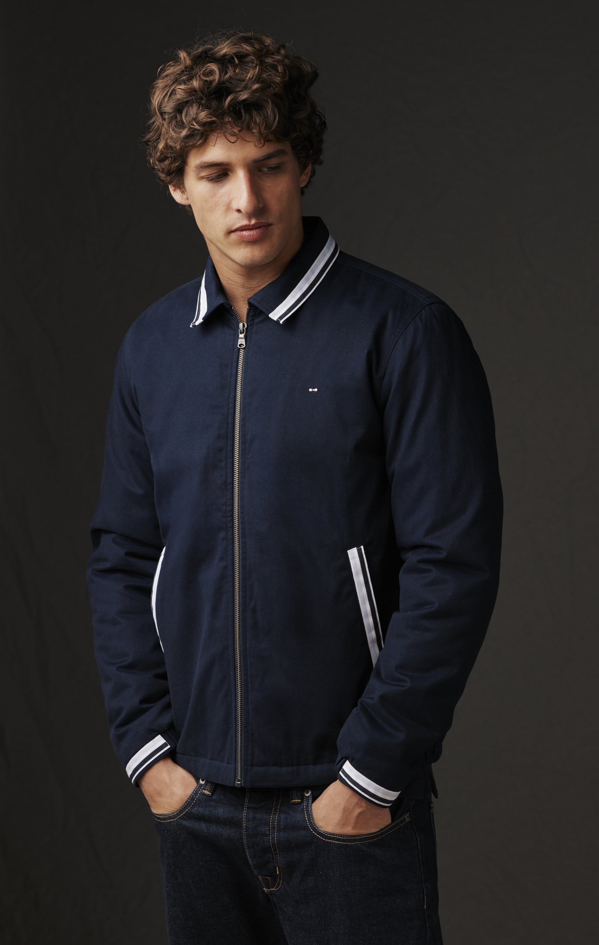 Sensible à la qualité des matières et à un engagement pour une mode plus durable, respectueuse des ressources et du travail de ses ateliers, Eden Park inaugure une nouvelle édition de sa capsule upcycling Pap'Atelier. Ce blouson marine en est une parfaite incarnation. Pour réaliser cette pièce unique en taille M, notre cheffe d'atelier a sélectionné un blouson masculin de nos archives auquel elle a ajouté des galons rayés tricolores également issus de nos stocks dormants. Col, entrées de poches et poignets sont ainsi rehaussé de rayures marine, ciel et blanches. Pratique et facile a porter grâce à son ouverture zippée, ce blouson marine vous accompagnera en toutes circonstances tout en s'accordant facilement à votre vestiaire.