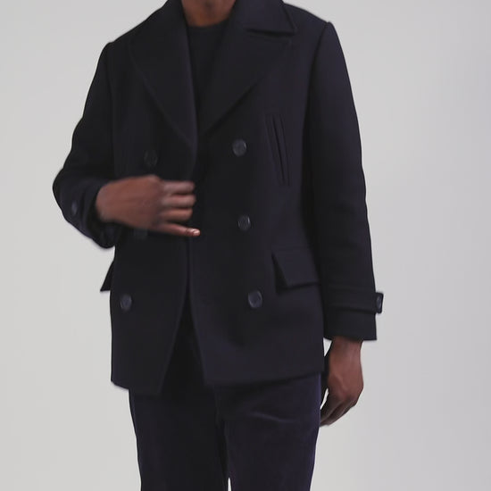 Notre caban en laine mélangée marine est un classique revisité. Ce manteau pour homme présente un boutonnage croisé et incarne tous les codes de cette pièce iconique et intemporelle du vestiaire masculin. Parfait pour une élégance hivernale, il combine style traditionnel et élégance contemporaine pour une allure sophistiquée en toute occasion.