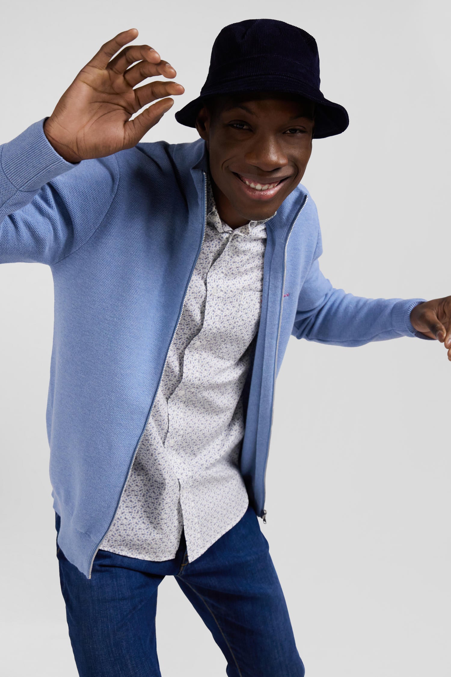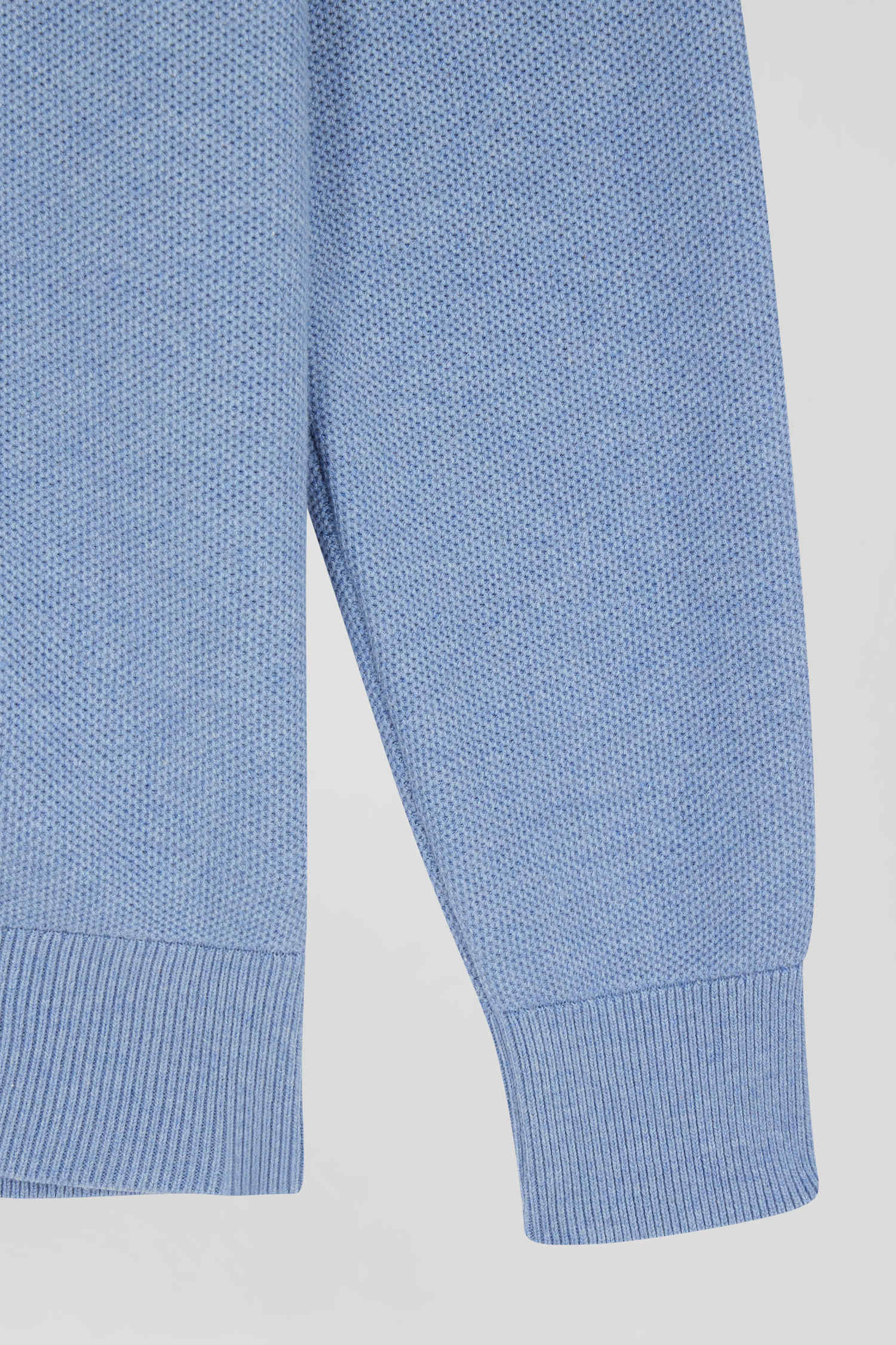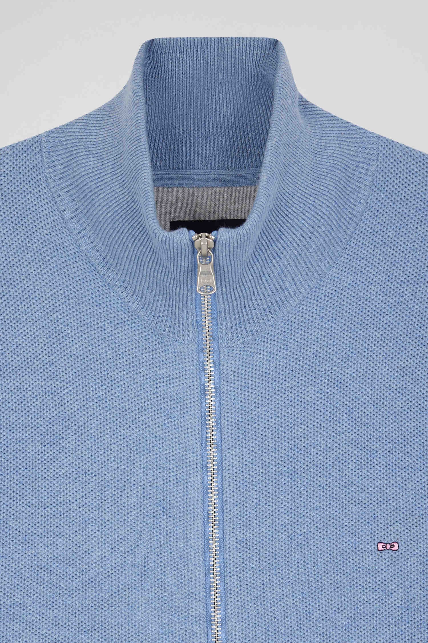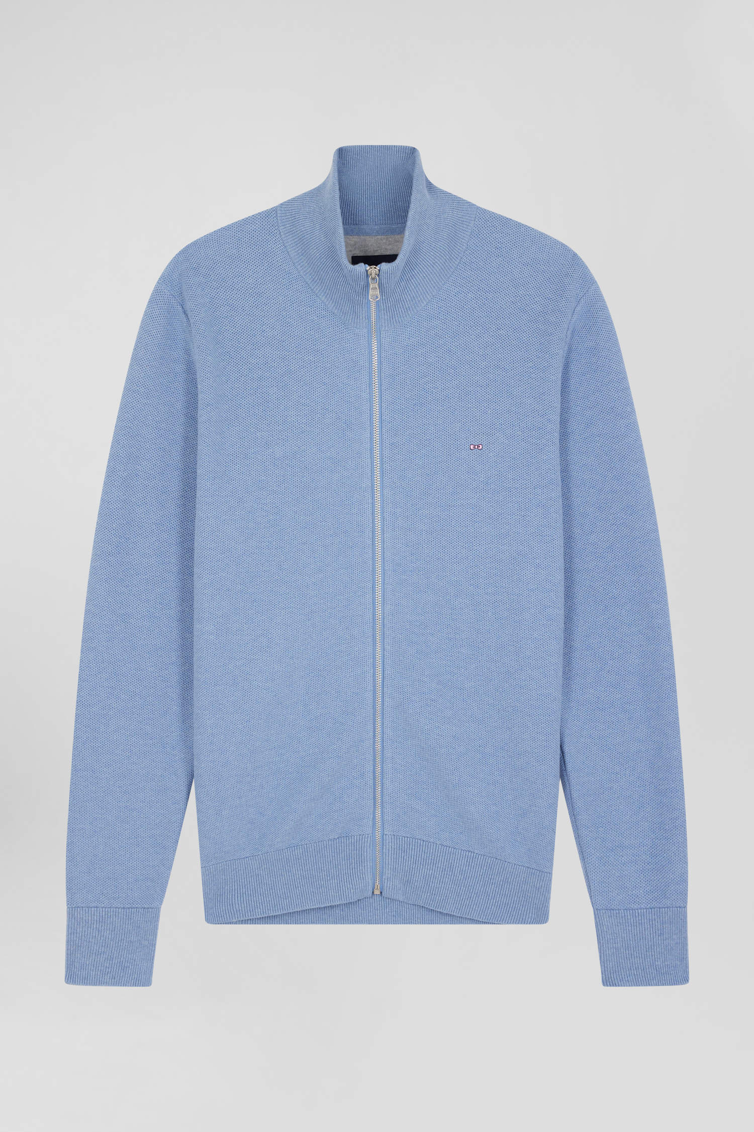 Cardigan zippé à col montant uni ciel en coton
