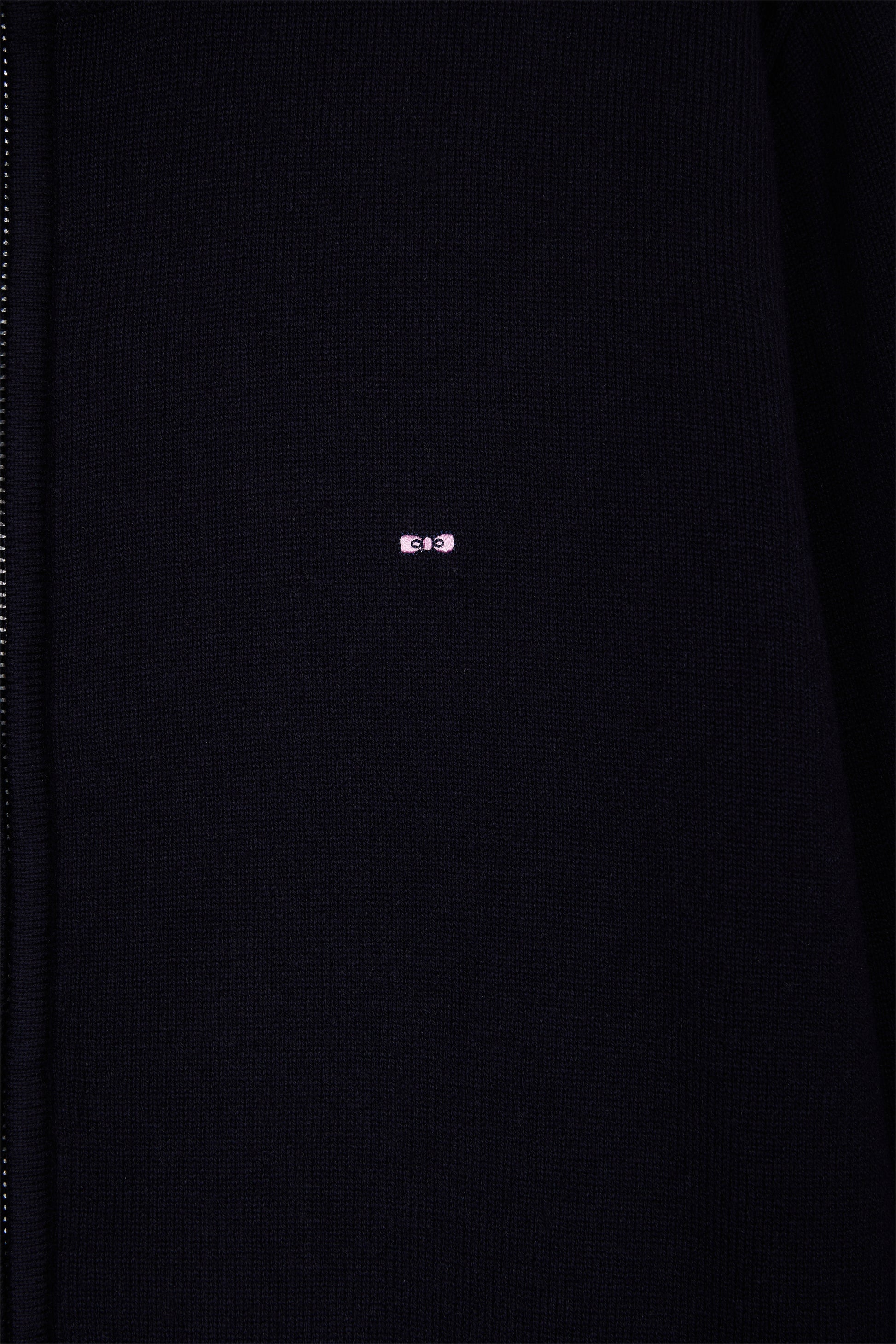 Ce cardigan zippé en jersey de coton et laine est un classique du vestiaire automne-hiver masculin. La broderie nœud papillon sur la poitrine apporte une signature distinctive à ce modèle minimaliste au col montant garantissant confort et élégance au quotidien.