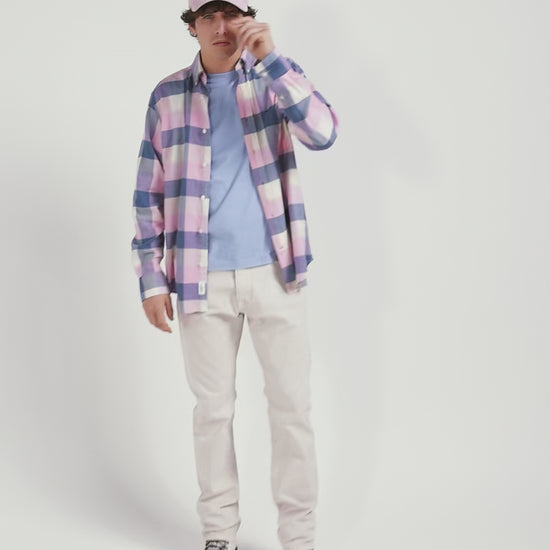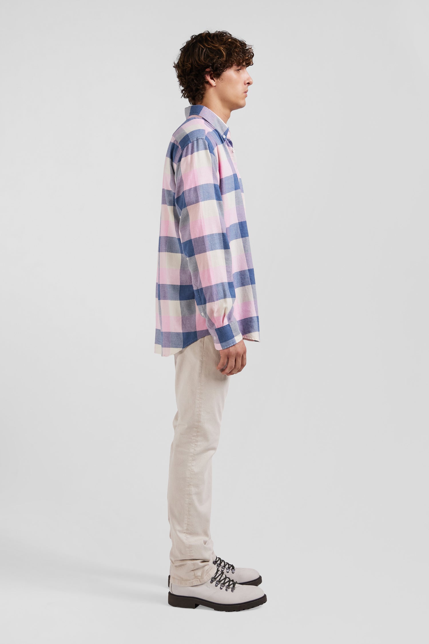 Chemise à carreaux en coton rose coupe Regular