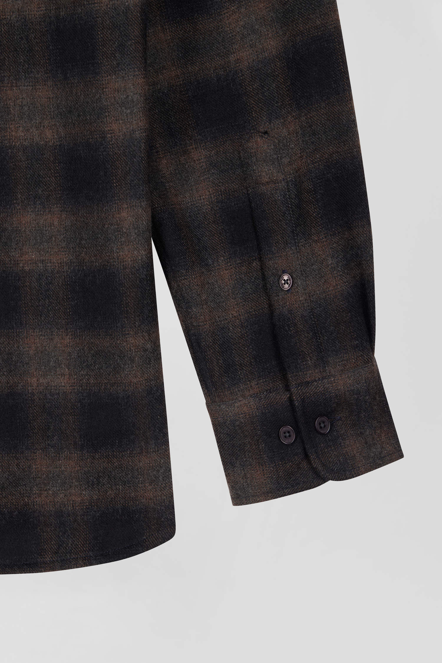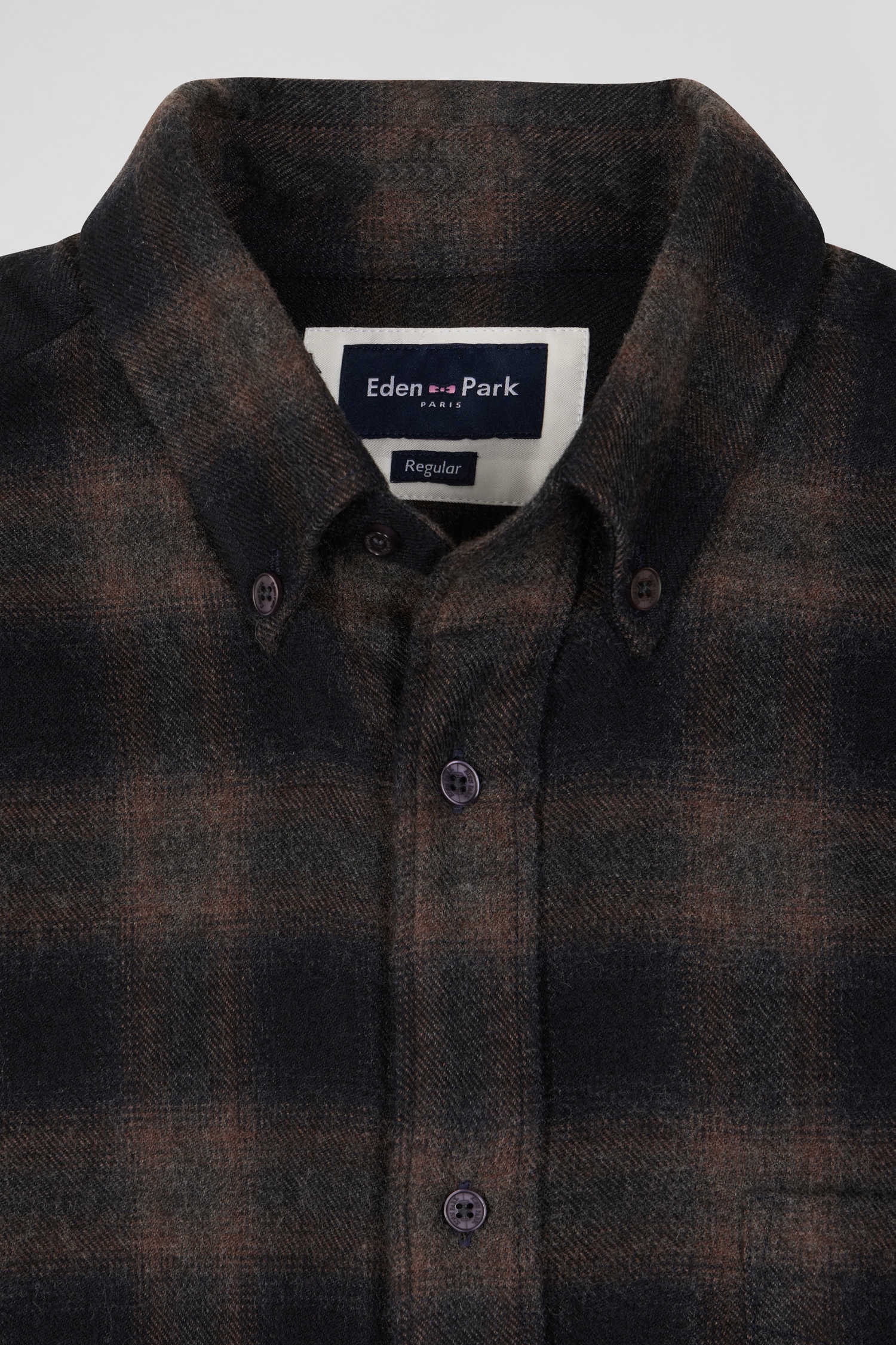 Chemise à carreaux en flanelle de coton noire coupe Regular
