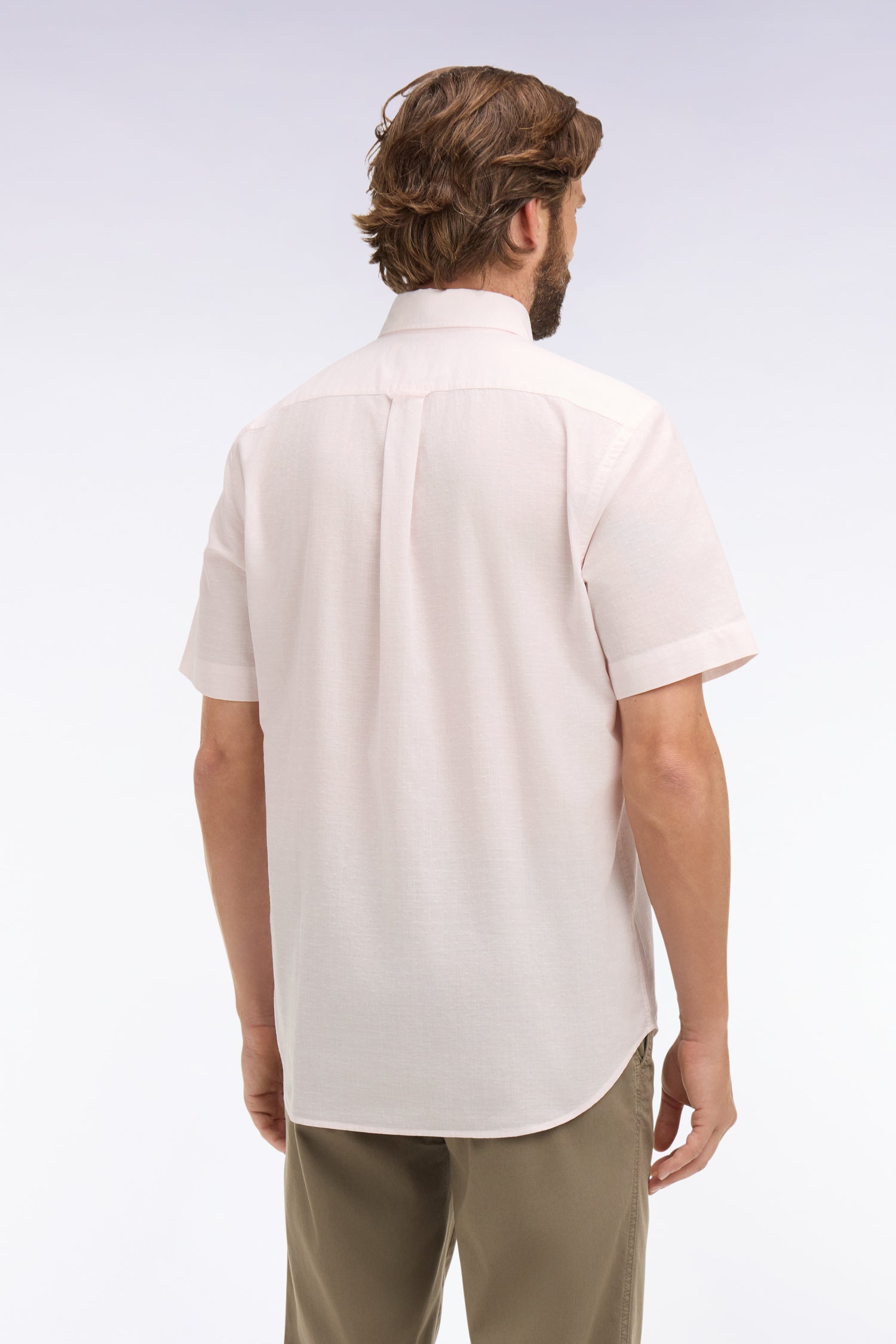 Chemise à manches courtes en coton jacquard rayé rose