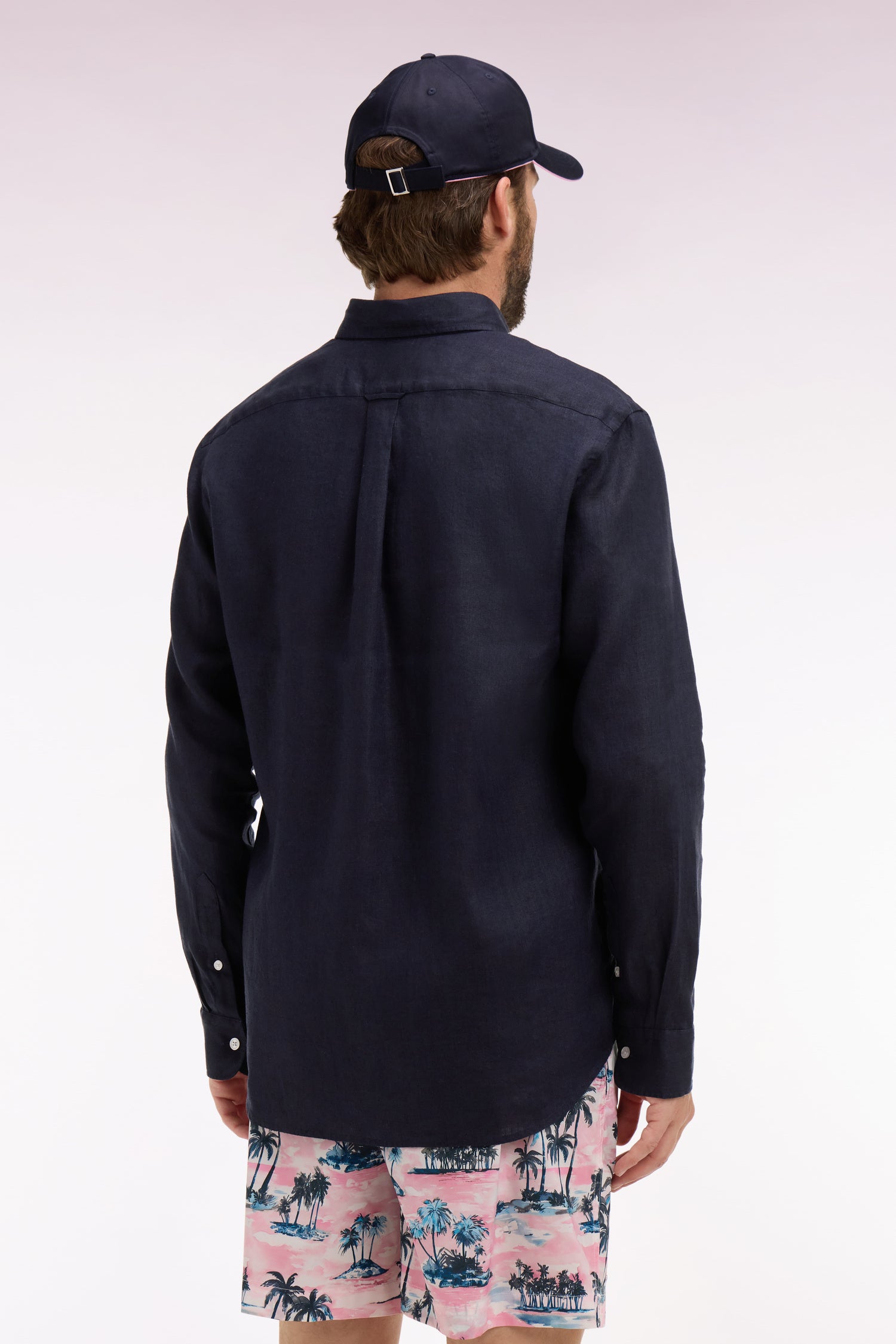 Chemise droite en lin marine