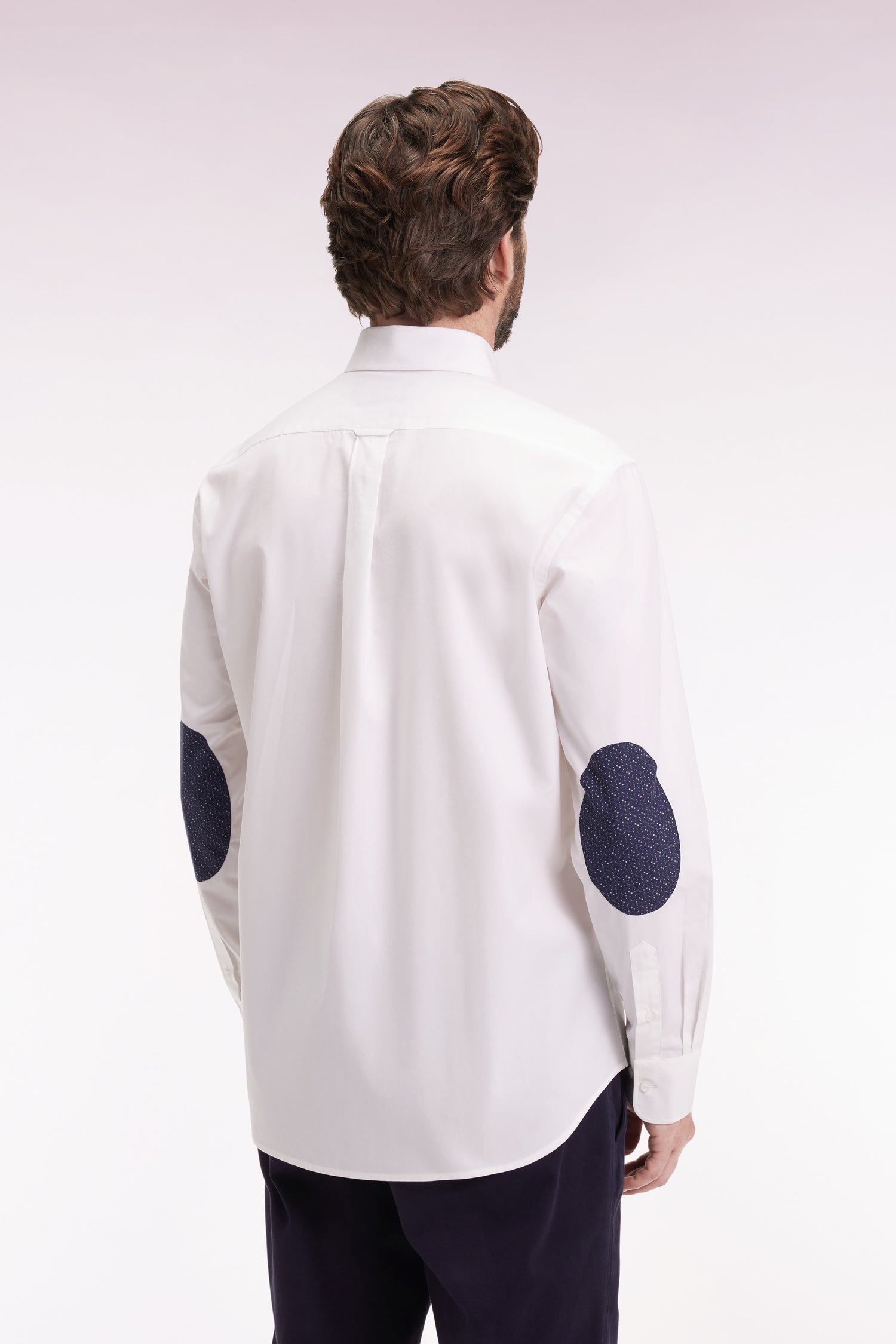 Derrière son allure épurée, cette élégante chemise en popeline de coton cache un clin d’œil ludique que reconnaitront les initiés du vestiaire Eden Park. L’emblème de la Maison, le nœud papillon, se dissimule dans son imprimé à micro-motifs à l’intérieur du col et travaillé en coudières bleues. Une chemise élégante à la coupe droite, twistée de finitions contrastées qui soulignent son esprit French Flair. Ce modèle intemporel et original est décliné en ciel, marine ou en coton blanc, toujours doté d'un col à pointes boutonnées pour plus de tenue