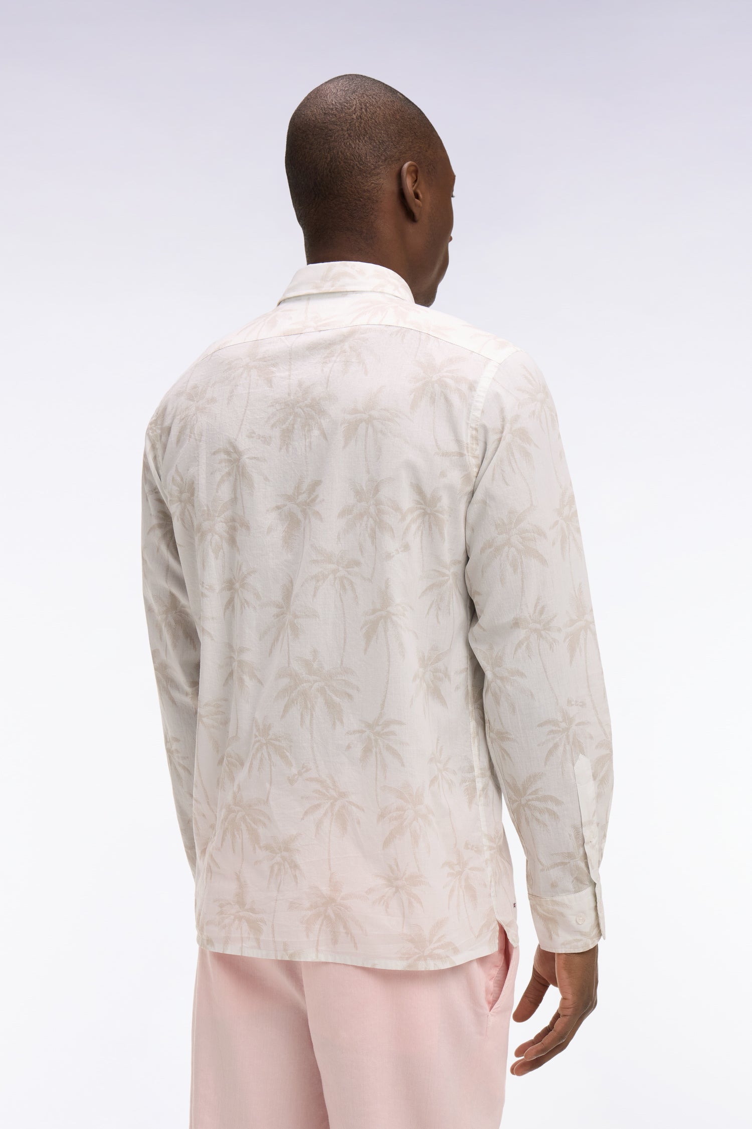 Chemise en coton blanche imprimé palmier beige coupe regular