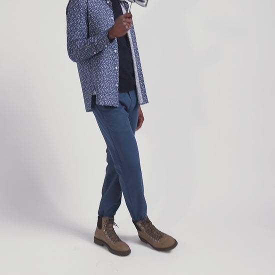 Pantalon chino bleu en gabardine de coton stretch coupe Regular