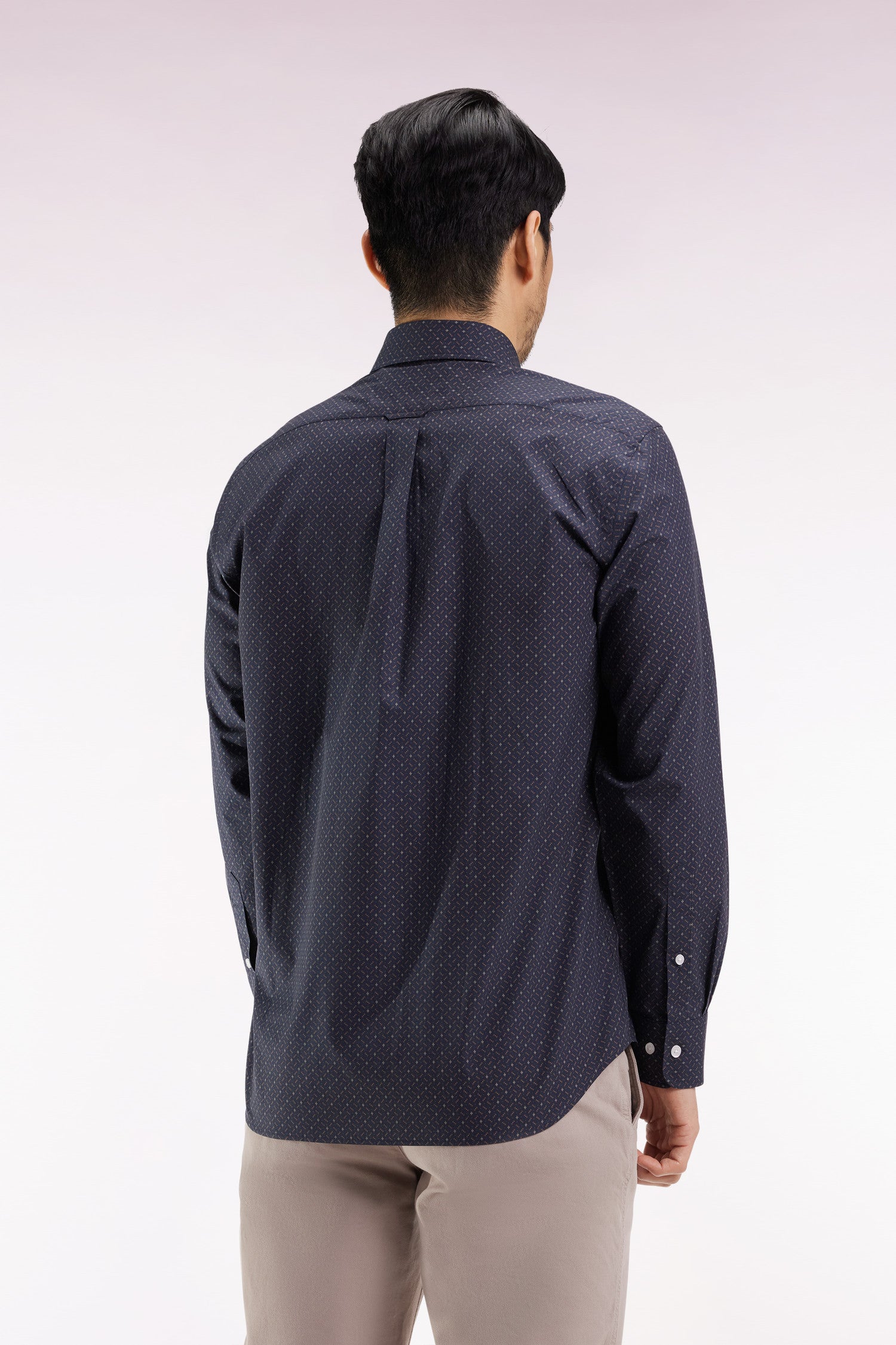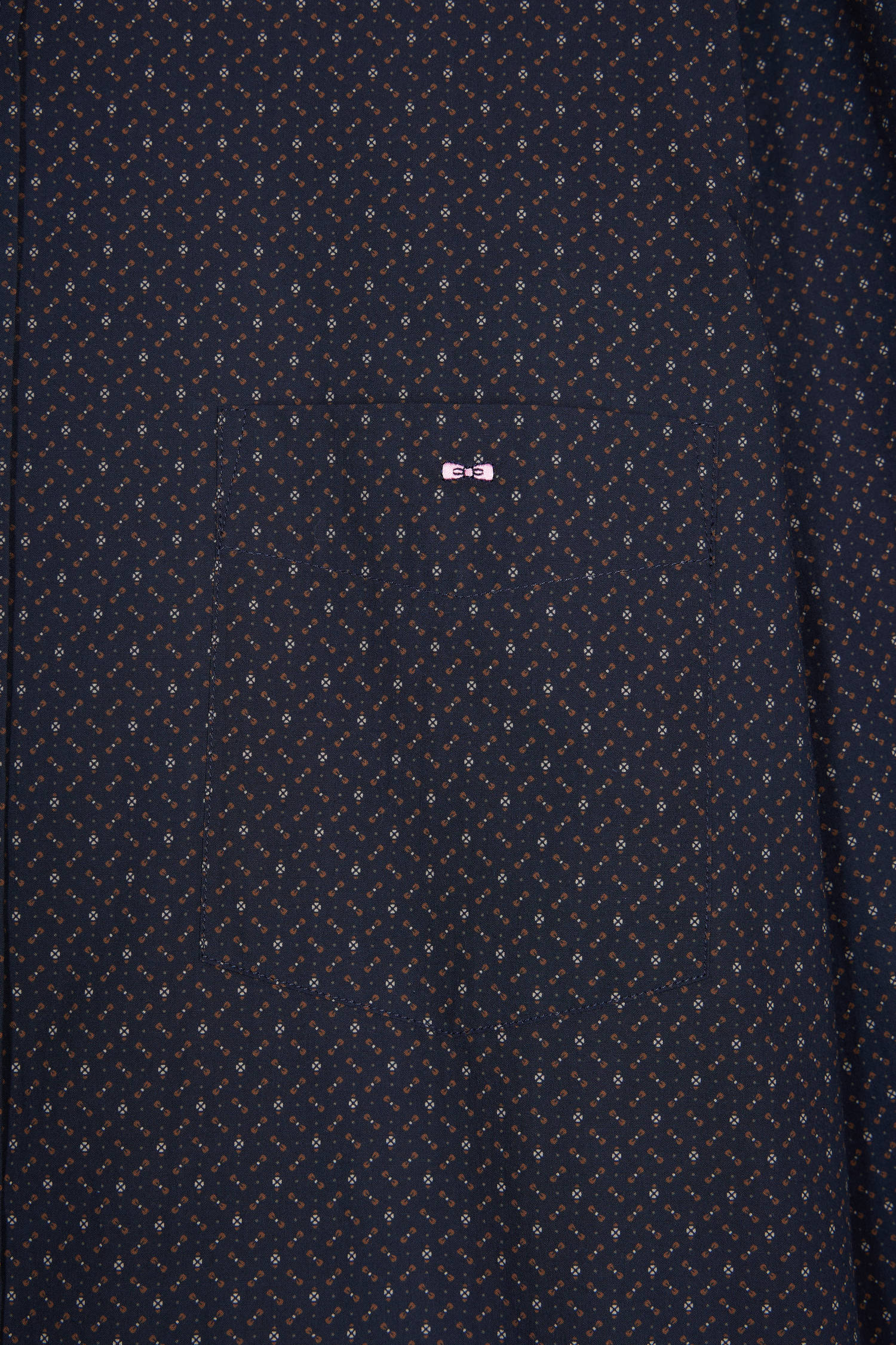 Sur une base grise ou marron élégante, un micro-motif exclusif à notre maison française offre une profondeur graphique singulière à cette chemise masculine. En observant de près, le nœud papillon, emblème d'Eden Park, s’y dévoile comme une signature confidentielle