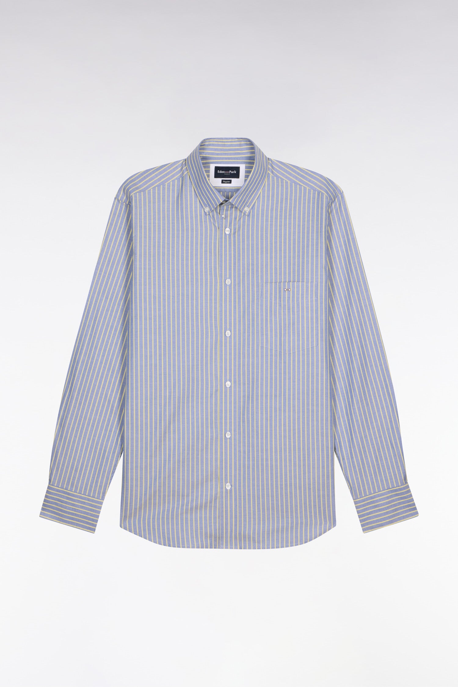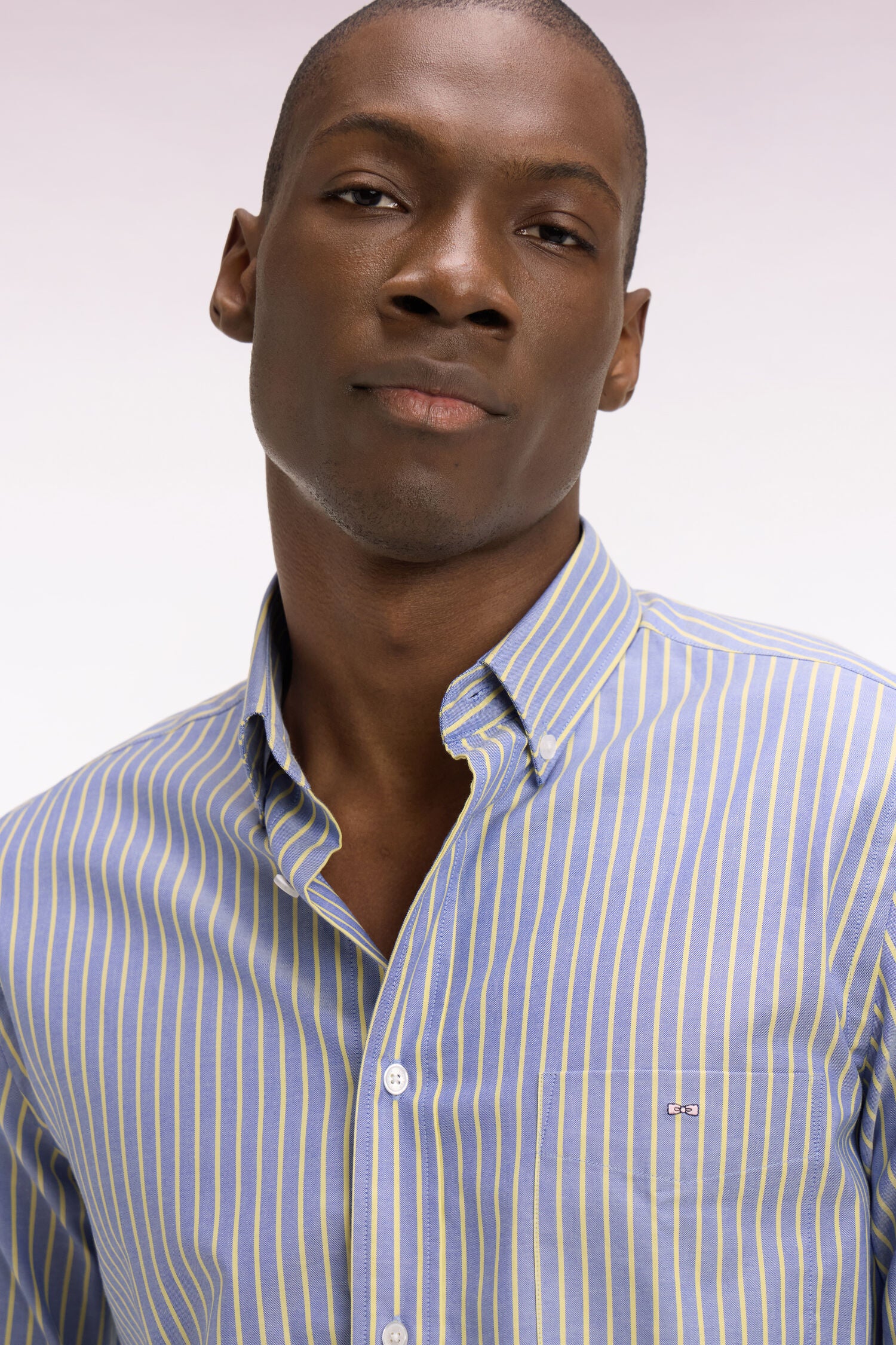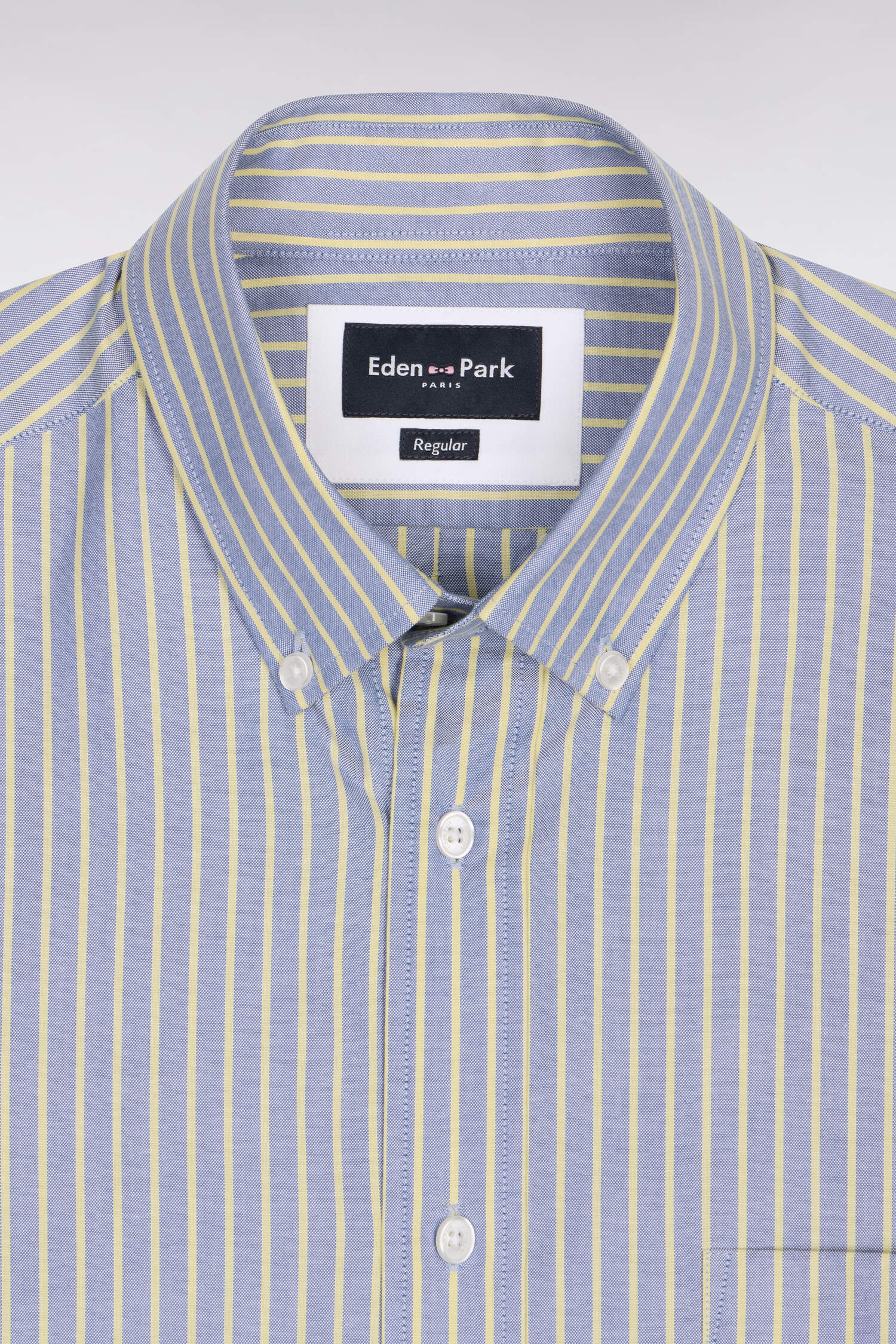Chemise en coton pinpoint à rayures jaunes coupe regular