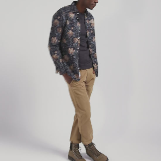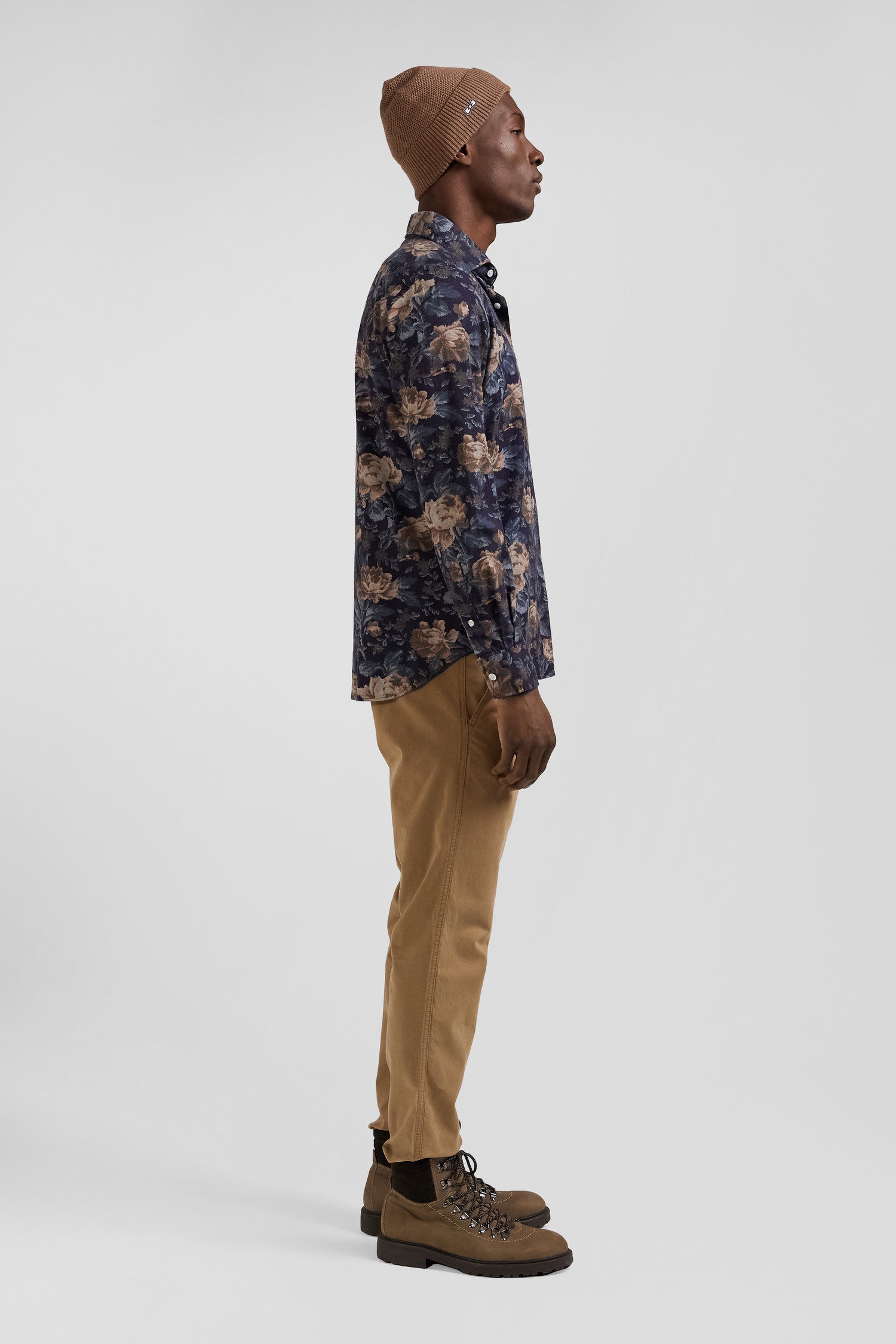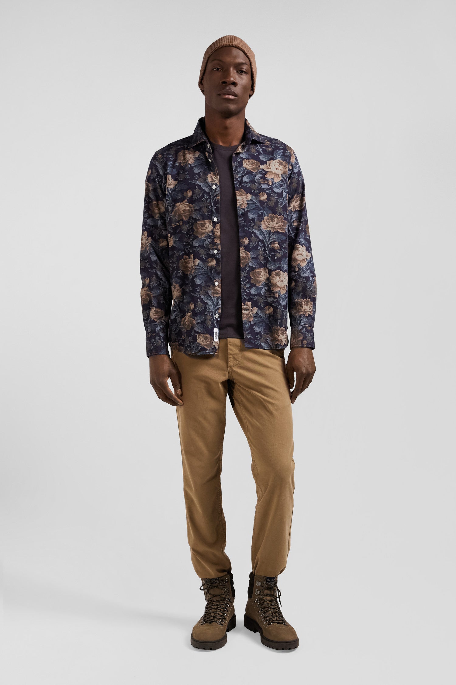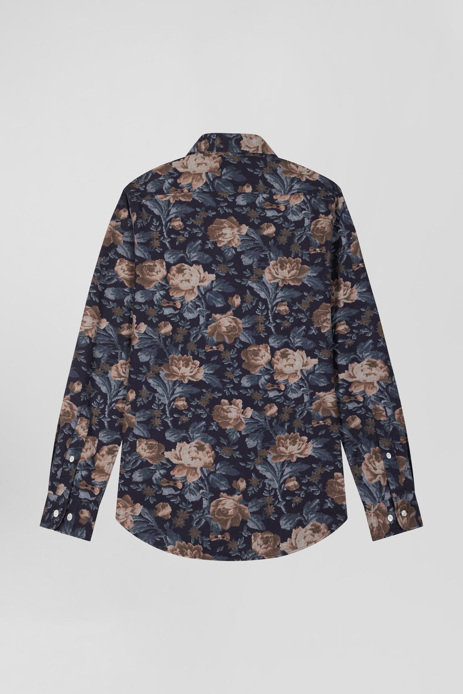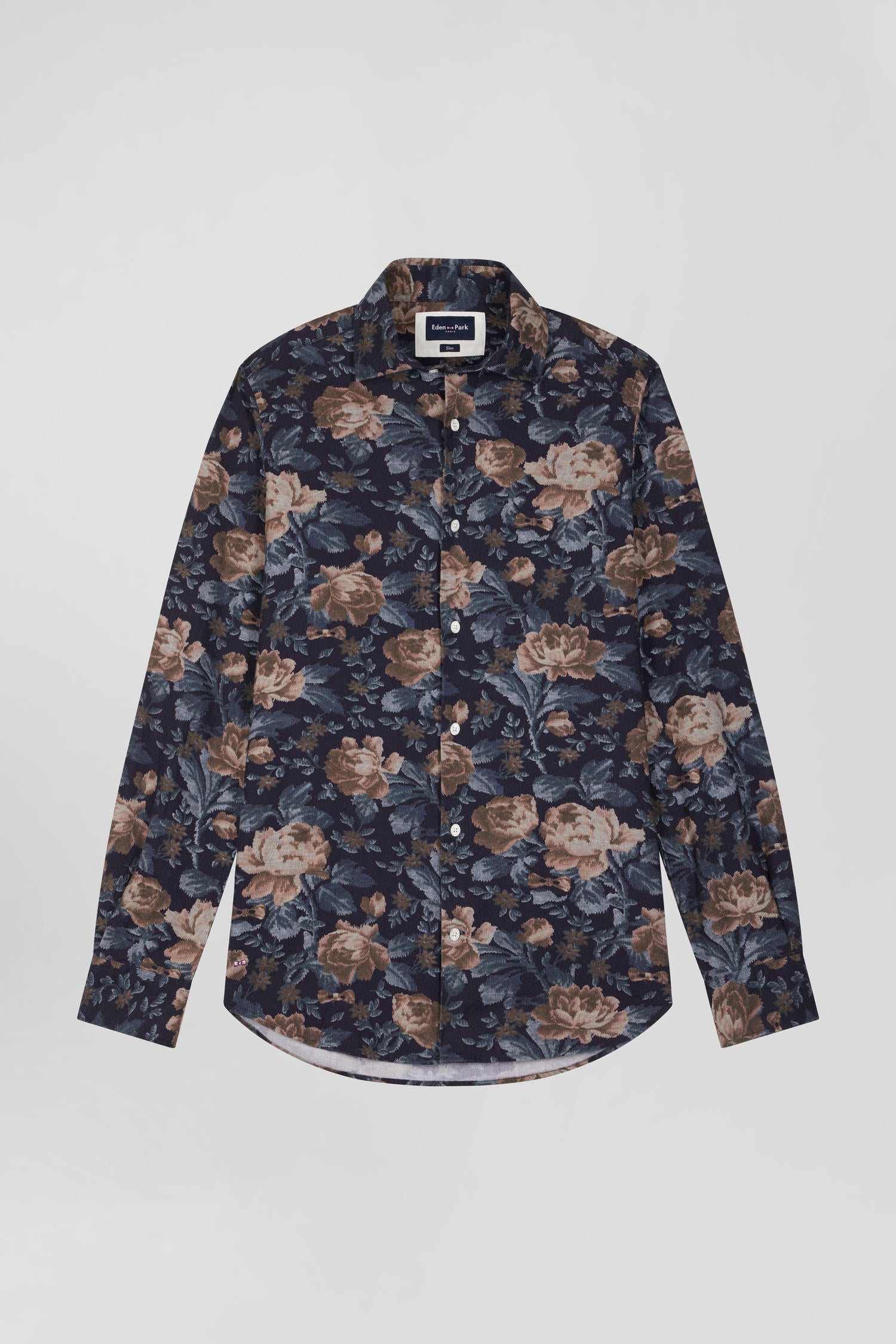 Chemise en flanelle de coton bleu marine imprimé floral coupe Slim