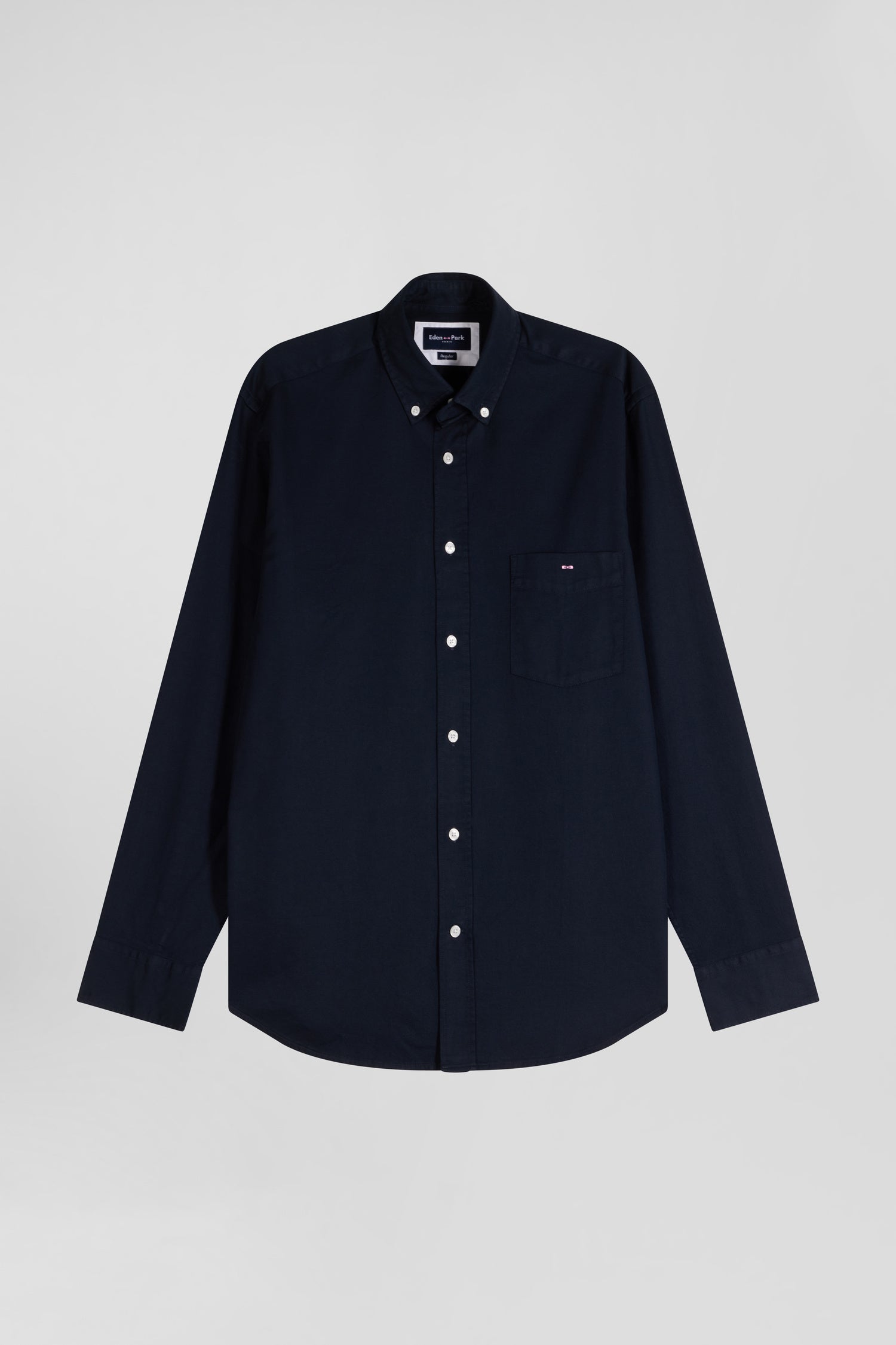 Réalisée avec soin dans une coupe Regular droite, cette chemise unie est confectionnée dans un piqué coton. Sa poche plaquée est rebrodée de notre emblématique nœud papillon rose, signature Eden Park tandis que sa patte de boutonnage classique et son col à pointe boutonné mettent en valeur nos boutons ovales siglés rappelant la forme des ballons de rugby.