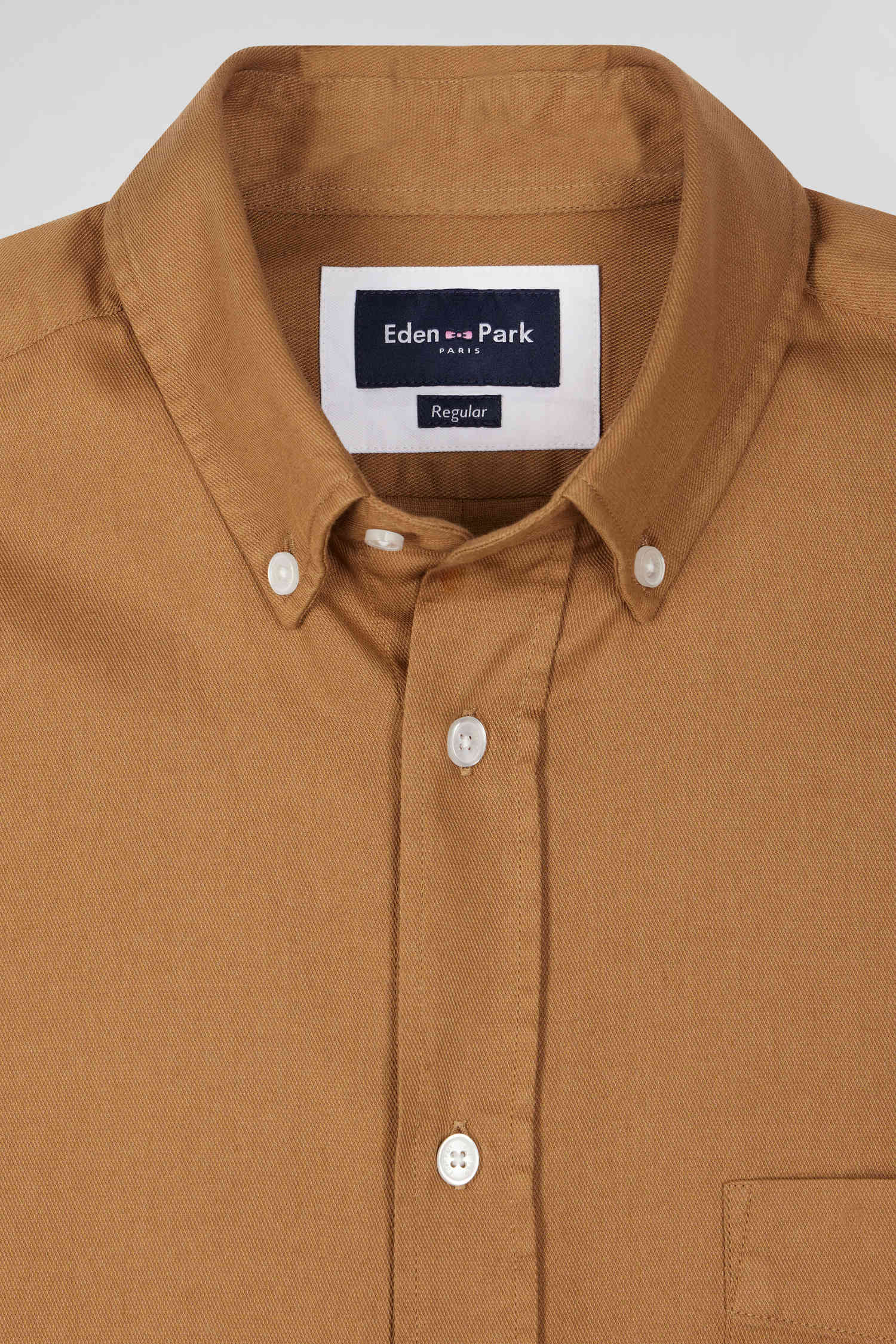 Chemise en piqué coton unie noisette coupe Regular