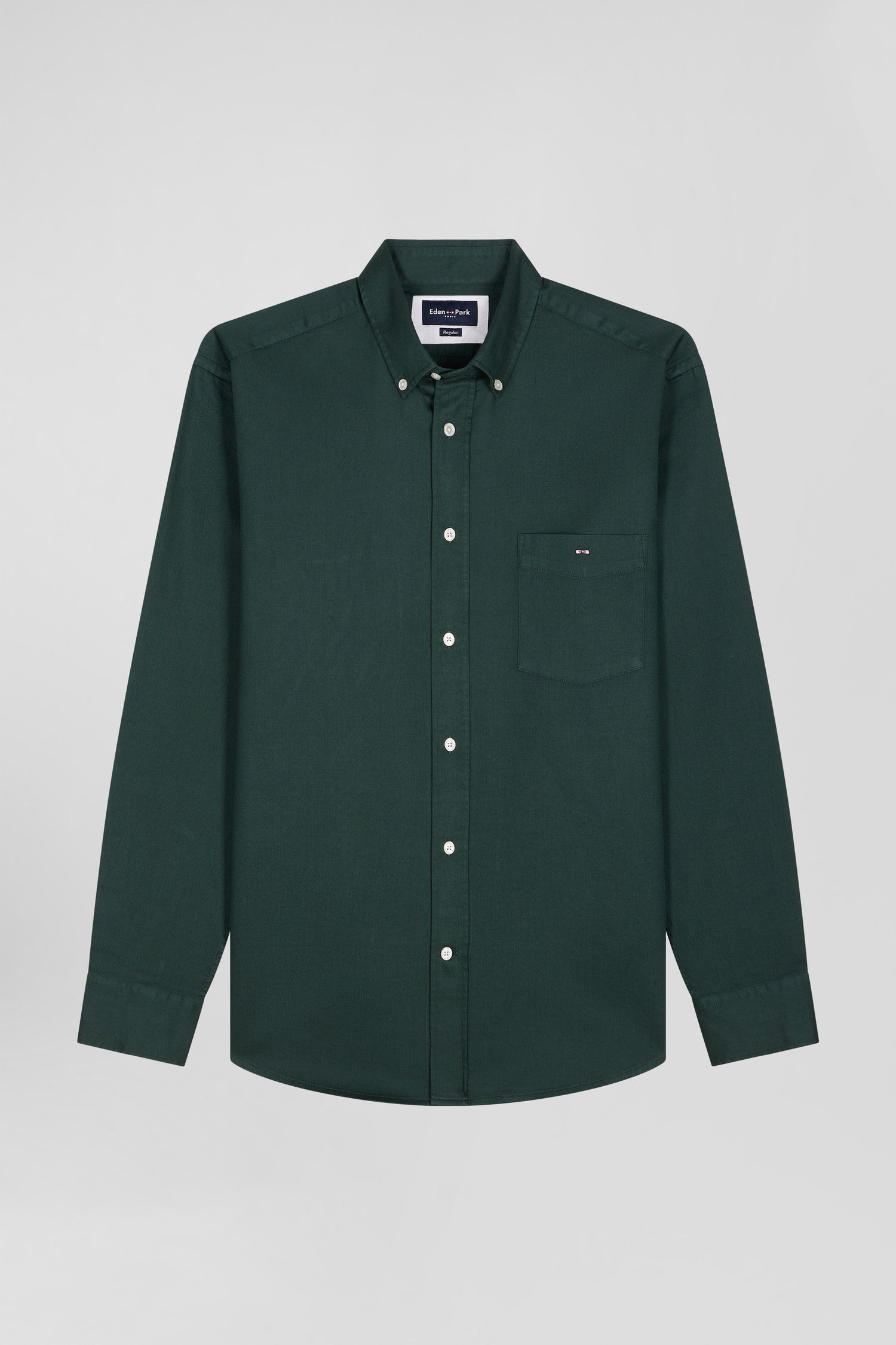 Réalisée avec soin dans une coupe Regular droite, cette chemise unie est confectionnée dans un piqué coton. Sa poche plaquée est rebrodée de notre emblématique nœud papillon rose, signature Eden Park tandis que sa patte de boutonnage classique et son col à pointe boutonné mettent en valeur nos boutons ovales siglés rappelant la forme des ballons de rugby.