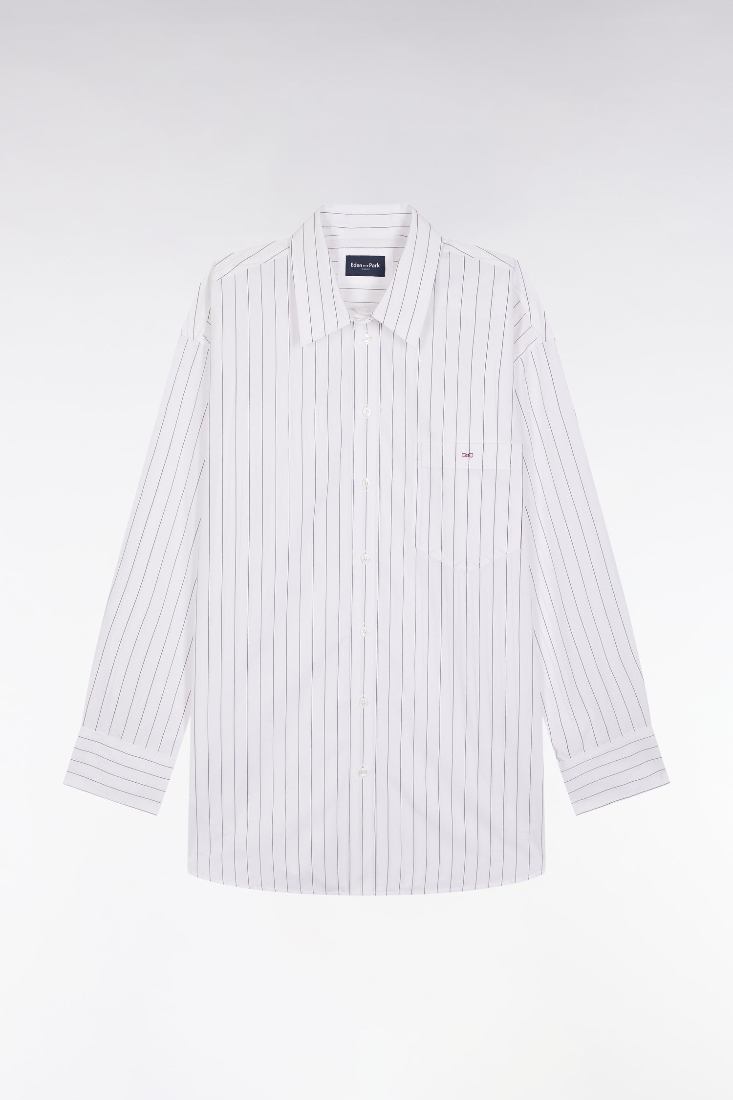 Chemise en popeline de coton blanche à rayures tennis coupe oversized