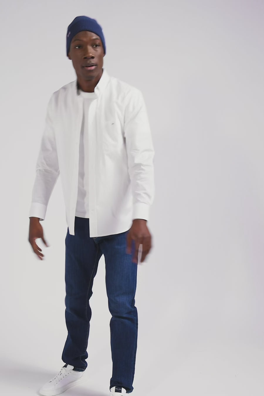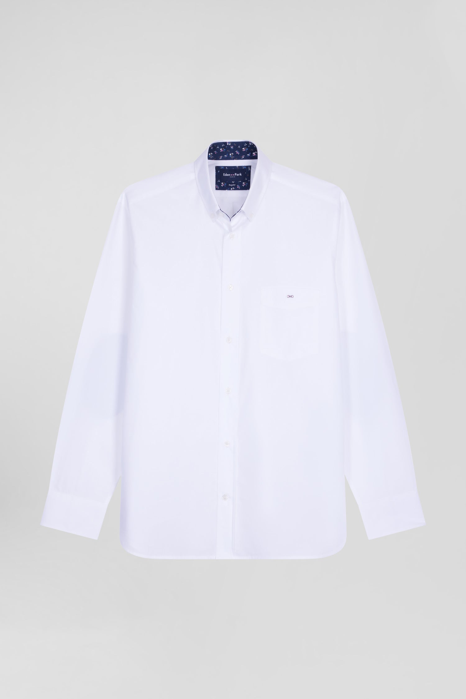 Chemise en popeline de coton blanche col boutonné et coudières imprimées coupe Regular