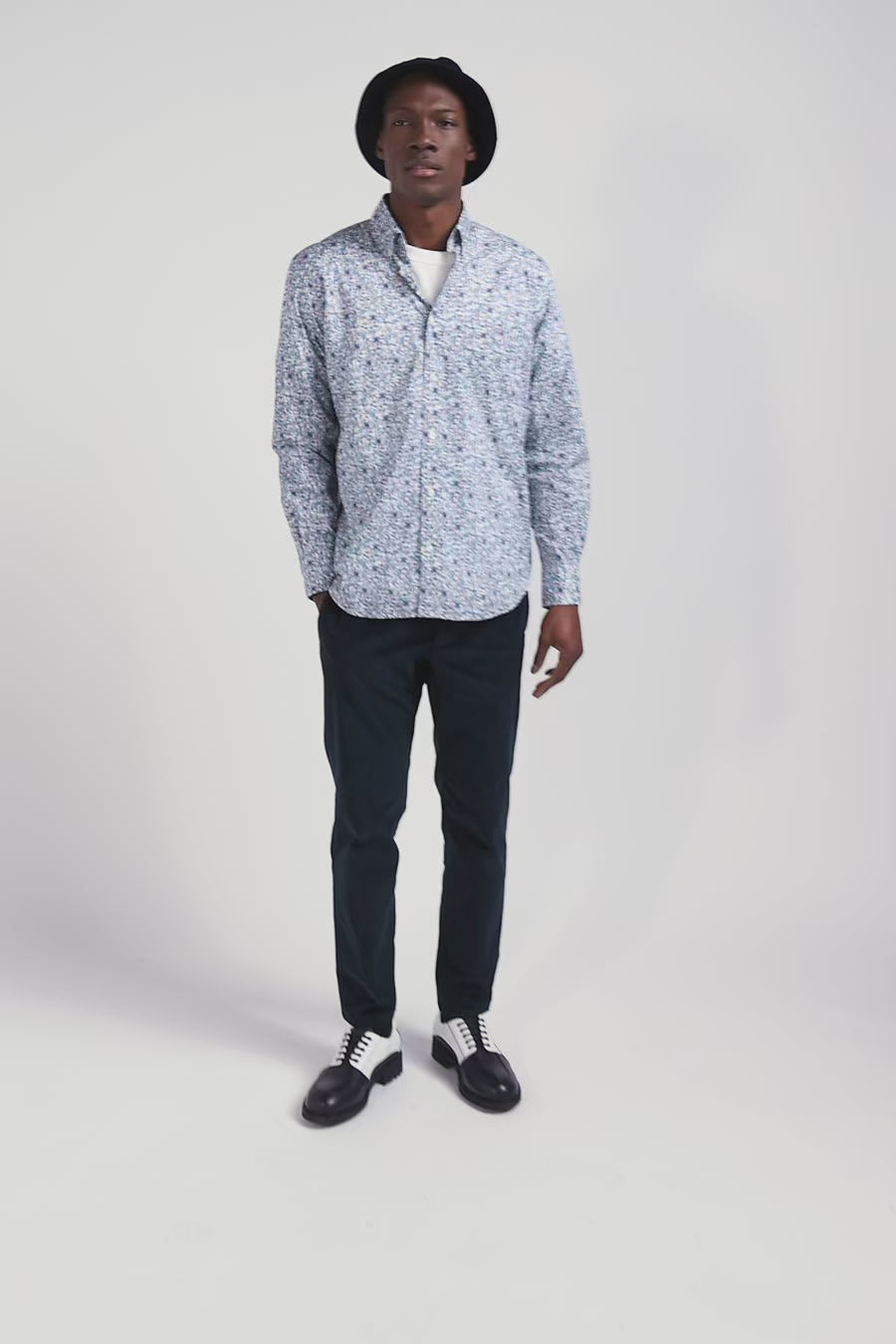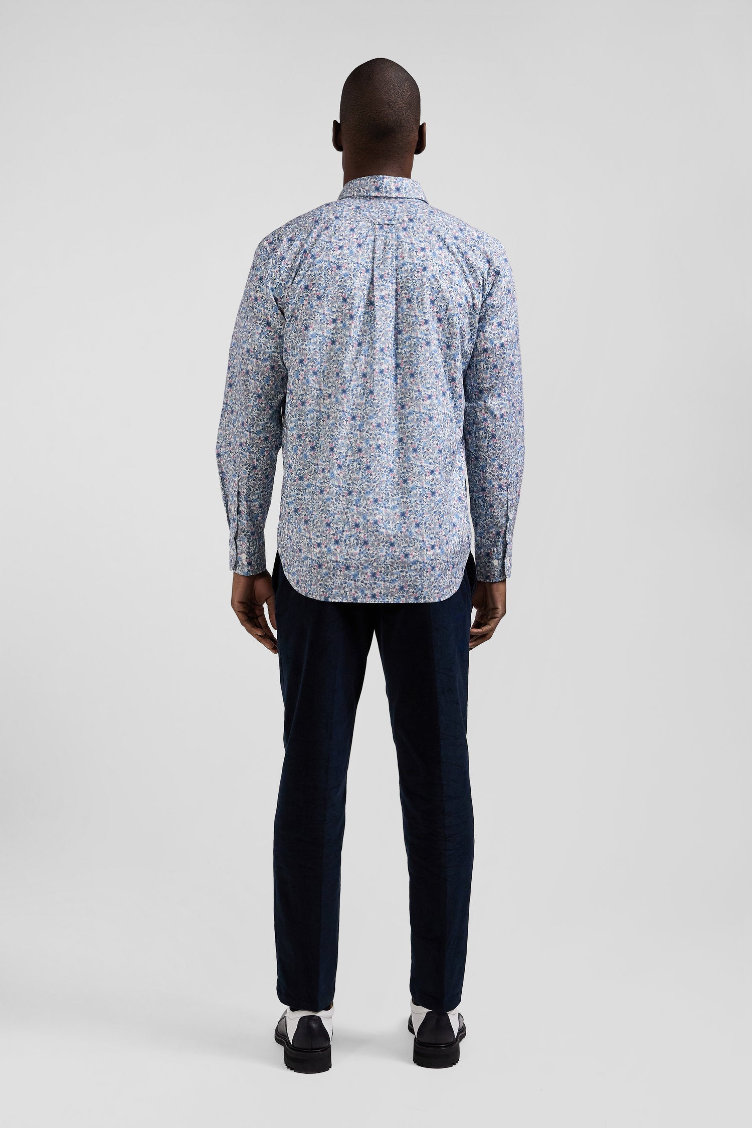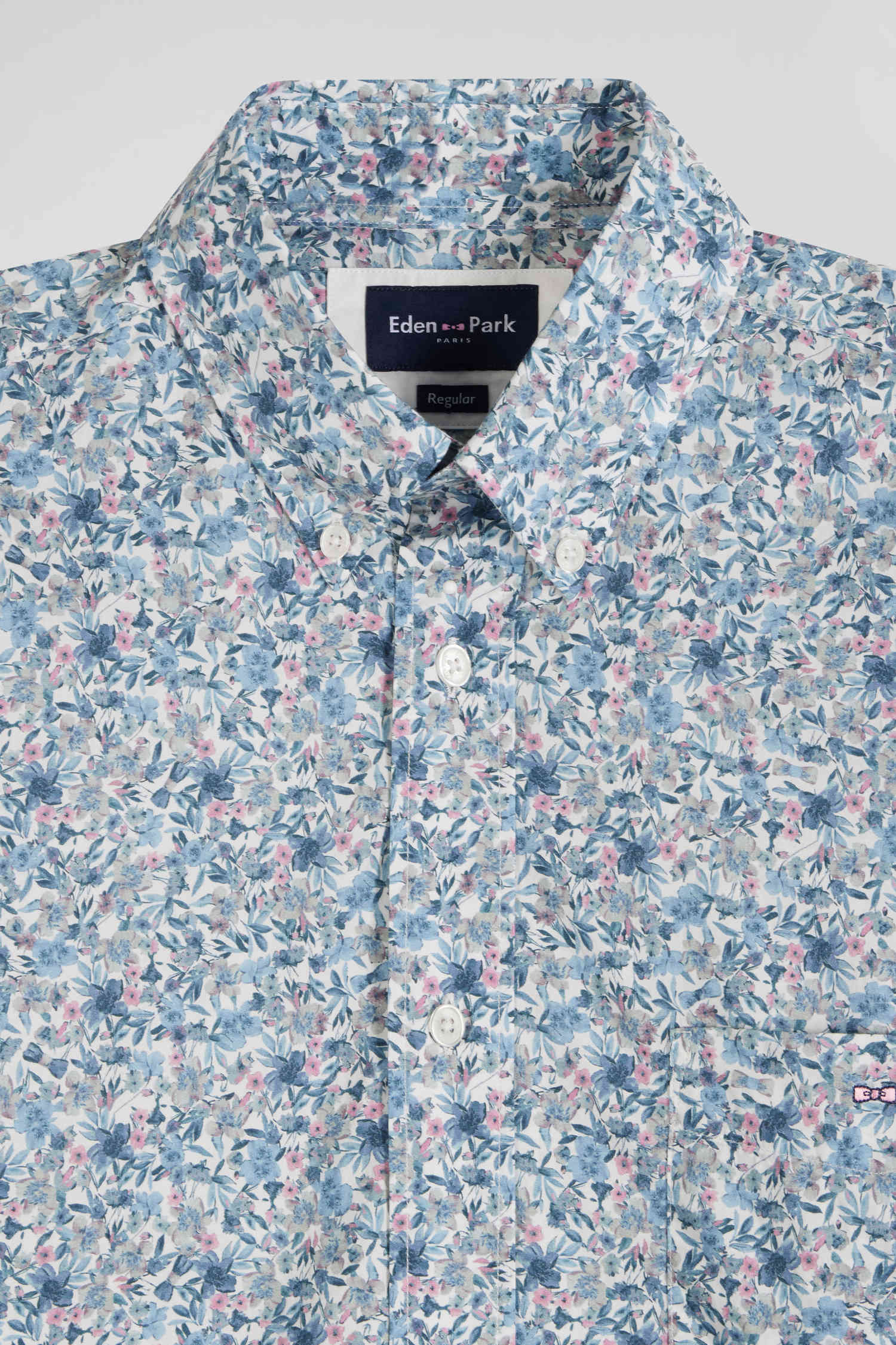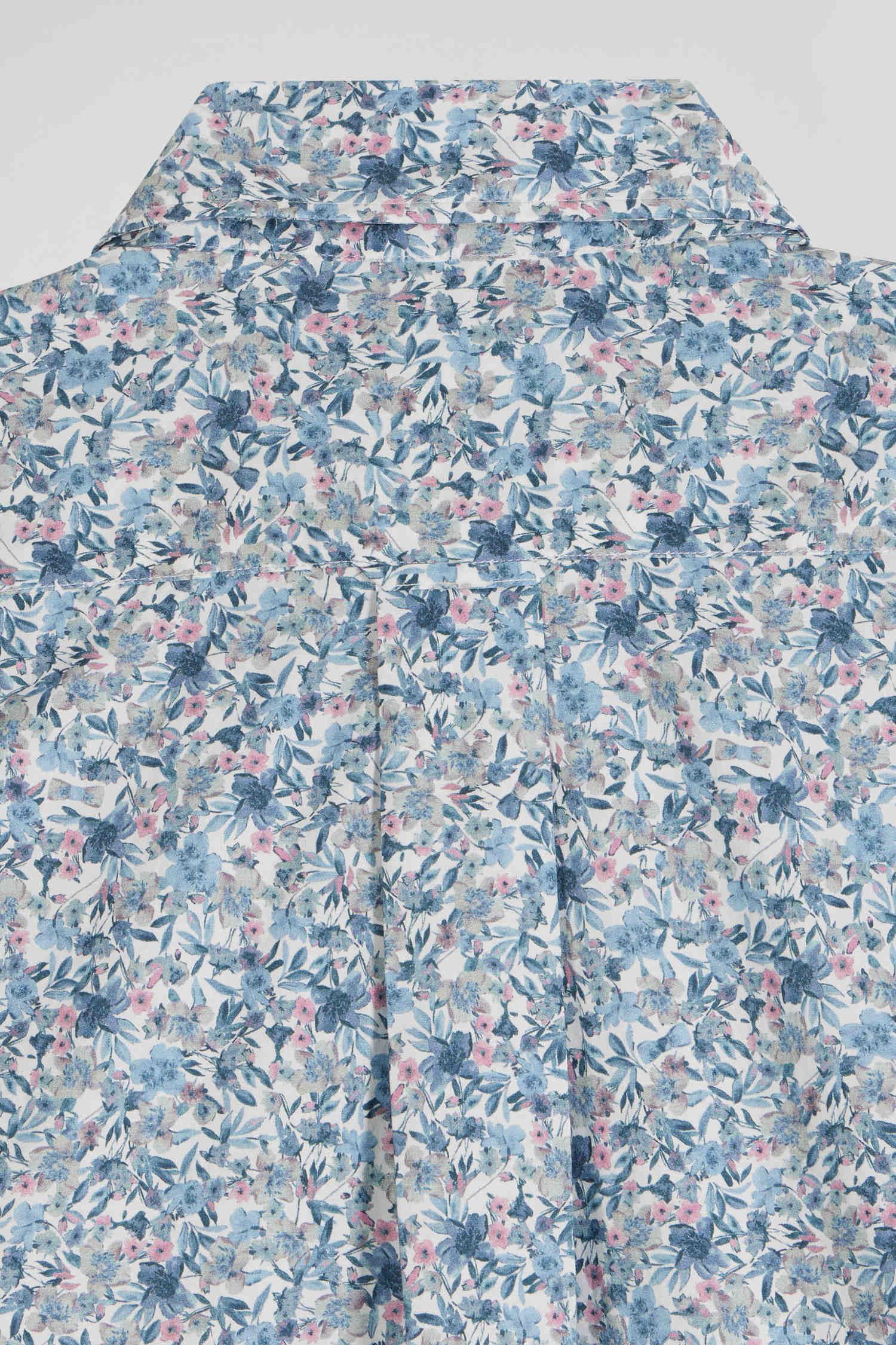 Chemise en popeline de coton ciel microimprimé floral coupe Regular