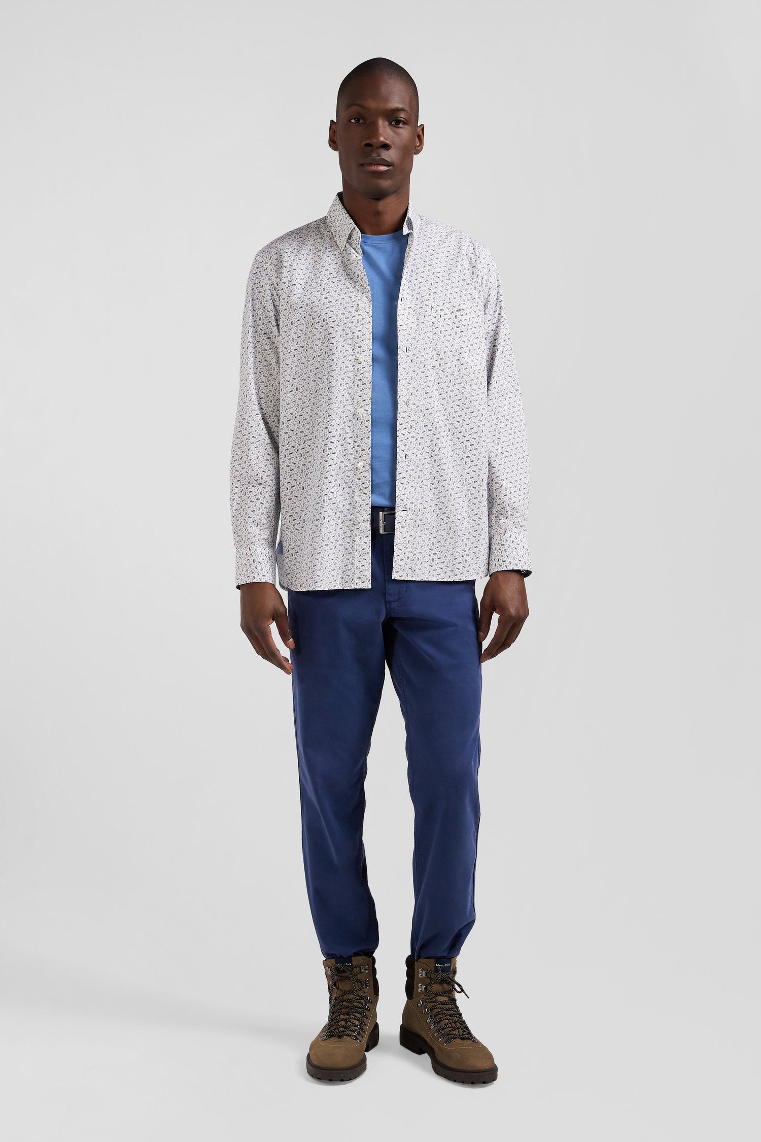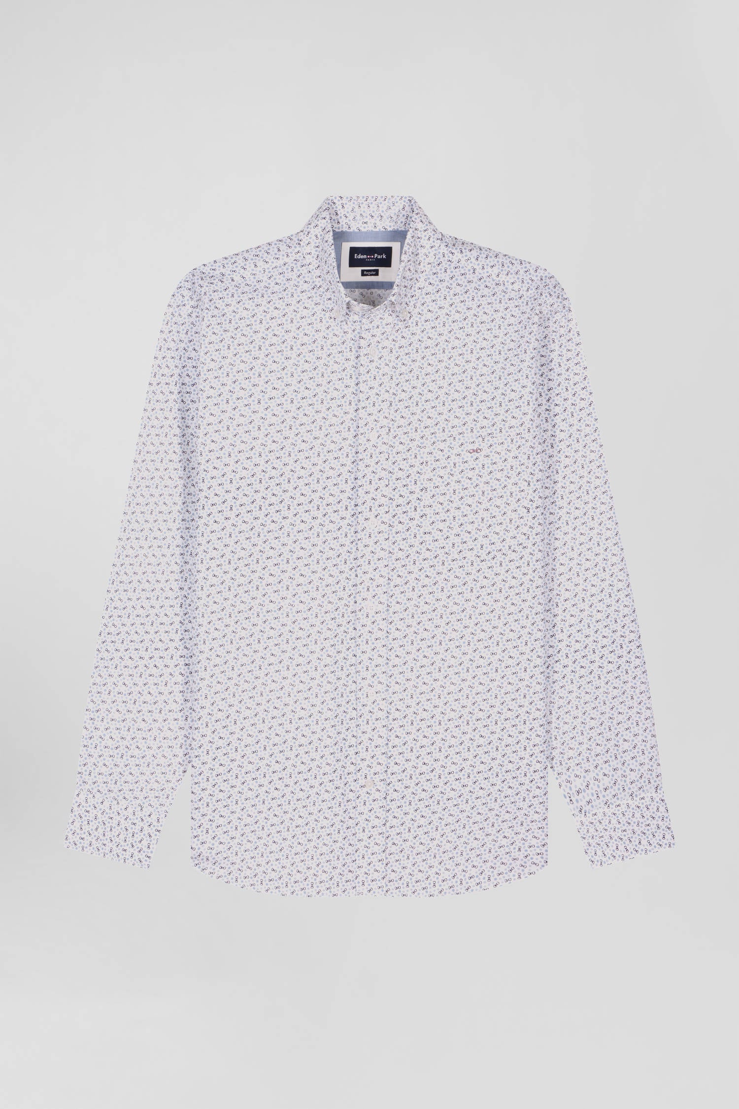Pour une silhouette travaillée, nous vous proposons cette chemise en popeline de coton écrue ou marine, ornée d'un microimprimé nœud papillon intégrant subtilement l'emblème de notre Maison. Sa coupe Regular droite assure un ajustement confortable, tandis que la poche poitrine et le col boutonné ajoutent une touche de sophistication raffinée à cette chemise imprimée.