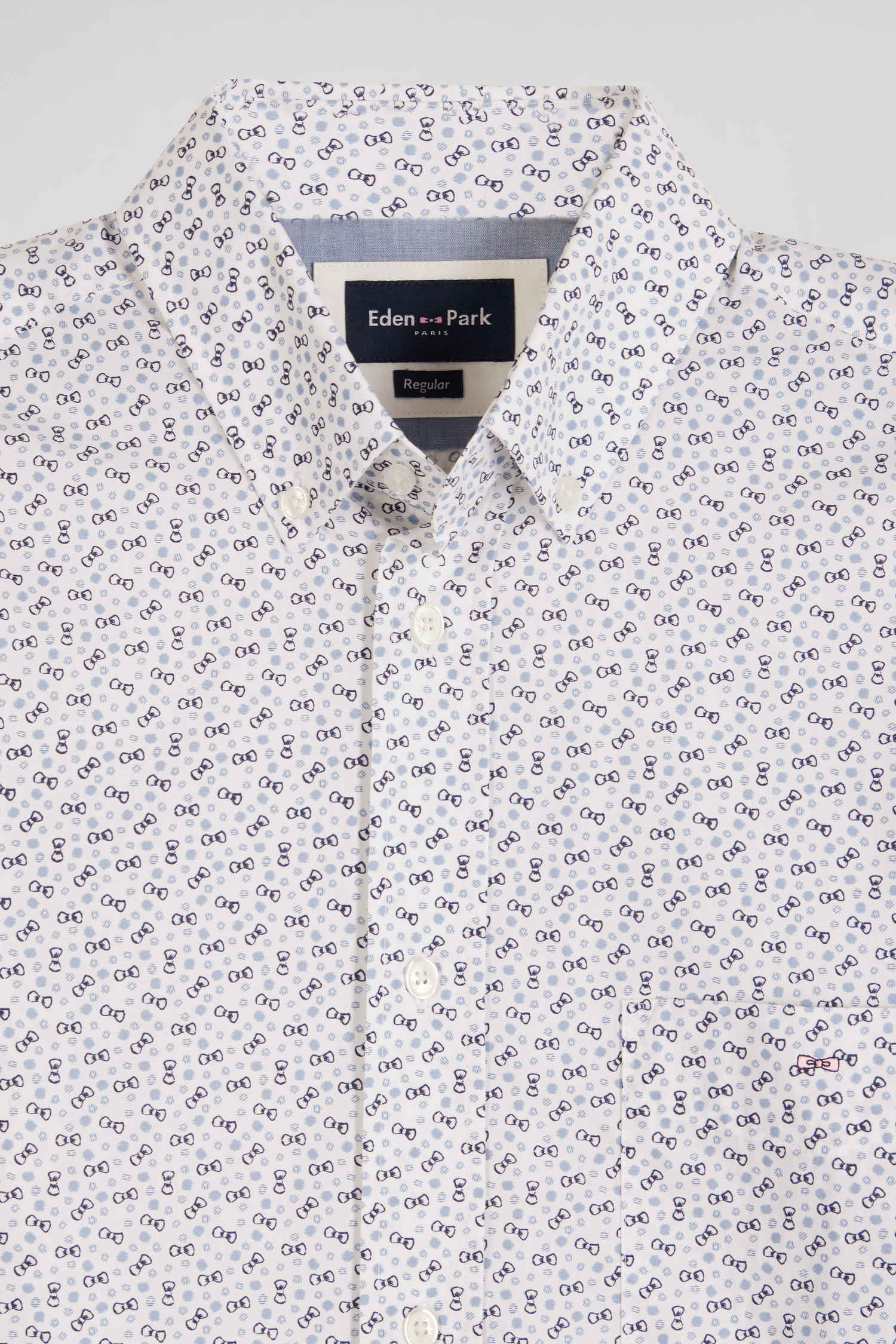 Chemise en popeline de coton écrue microimprimé nœud papillon coupe Regular