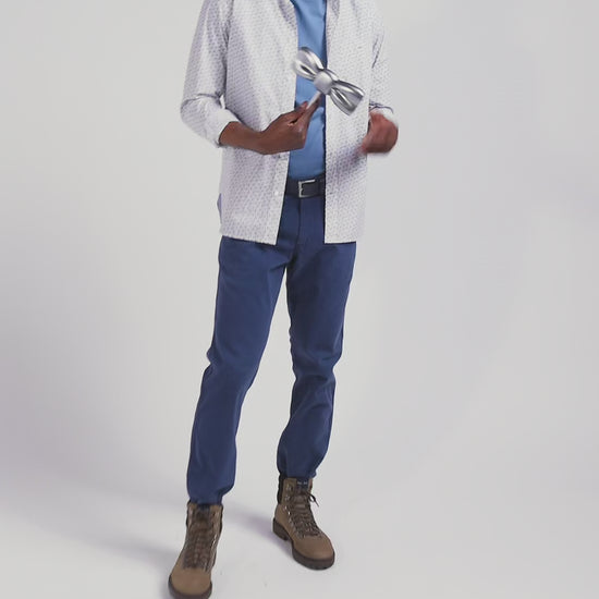 Pantalon chino bleu en gabardine de coton stretch coupe Regular