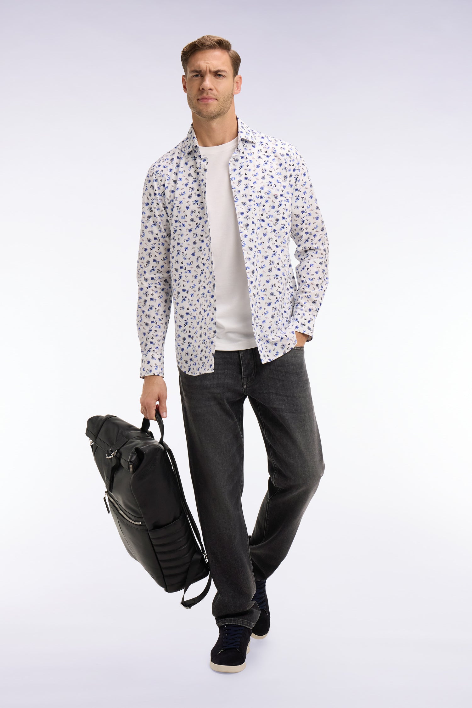 Chemise en popeline de coton imprimé floral bleu coupe slim