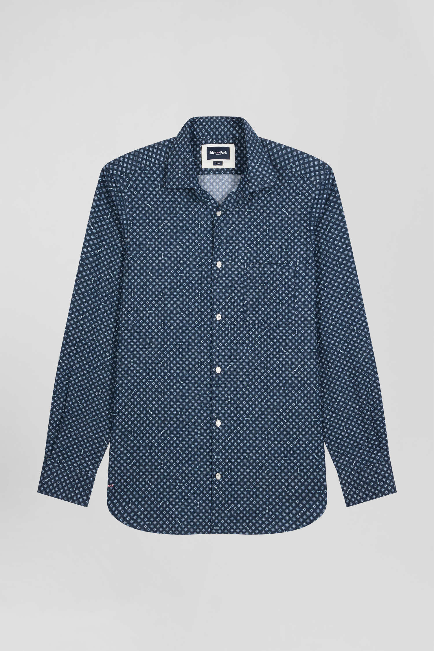 Chemise en popeline de coton indigo imprimé graphique coupe Slim