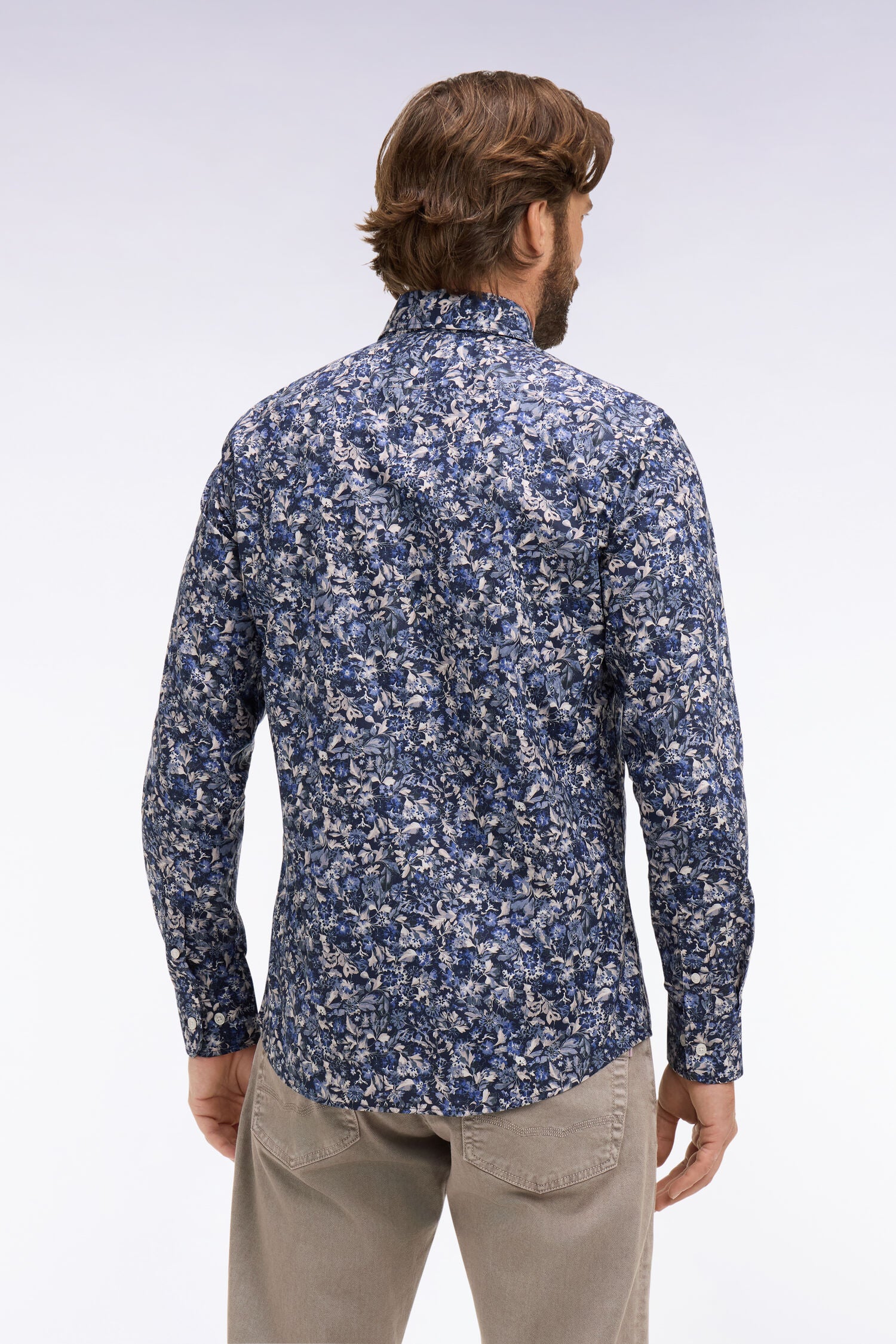 Dans un registre plus fantaisiste, cette chemise en popeline de coton, marine ou blanche, mise sur la qualité de sa matière et la précision de sa coupe slim. L'imprimé floral aux tonalités bleues ou bordeaux spécialement dessiné pour cette collection et sa poche plaqué apportent une touche sport-chic, fidèle à l’esprit de la Maison. Un essentiel moderne pour structurer les silhouettes du quotidien que vous associez cette chemise homme à un jean, un chino ou un pantalon plus habillé pour une cérémonie d'été.