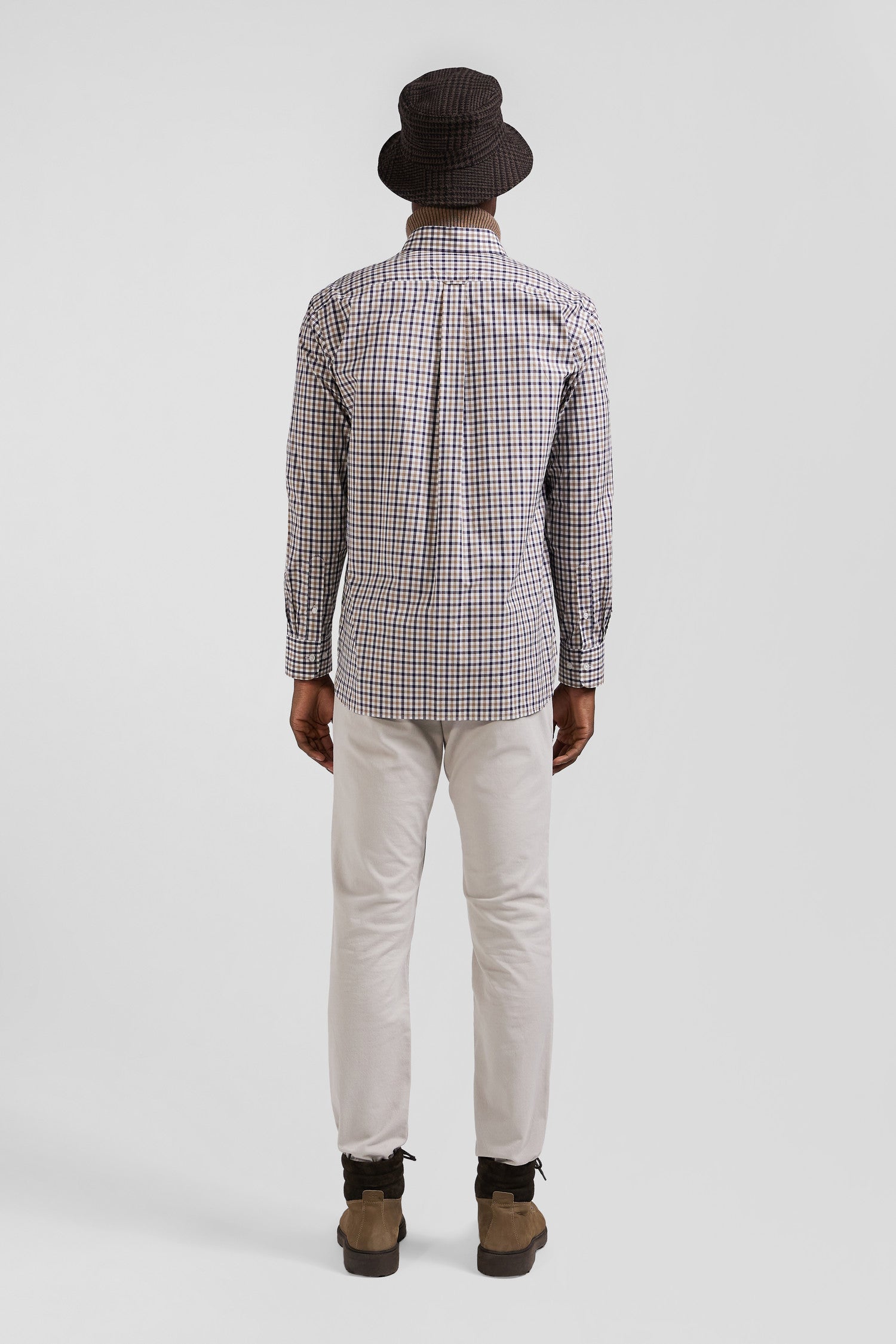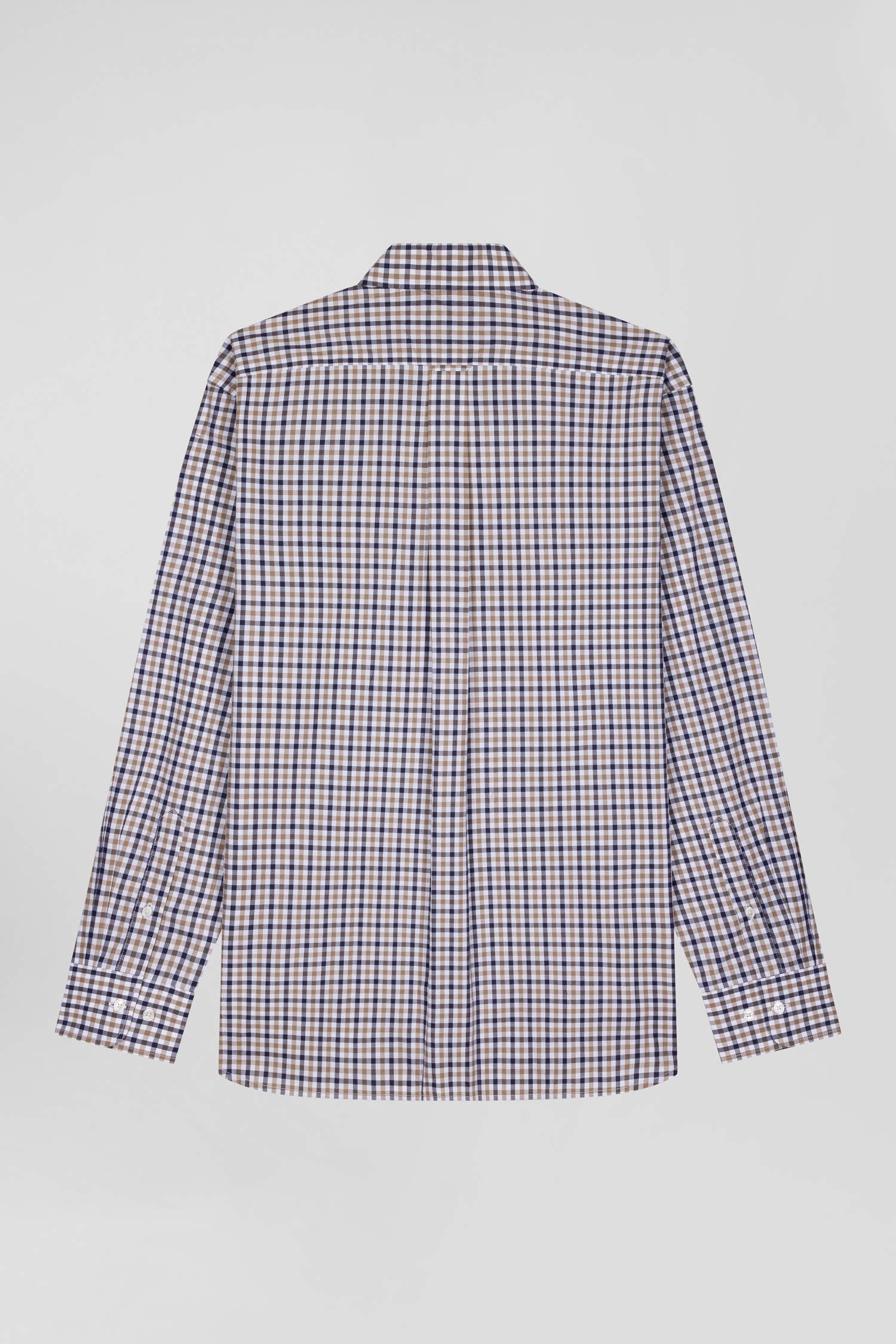 Chemise en popeline de coton marron à carreaux bicolore coupe Regular