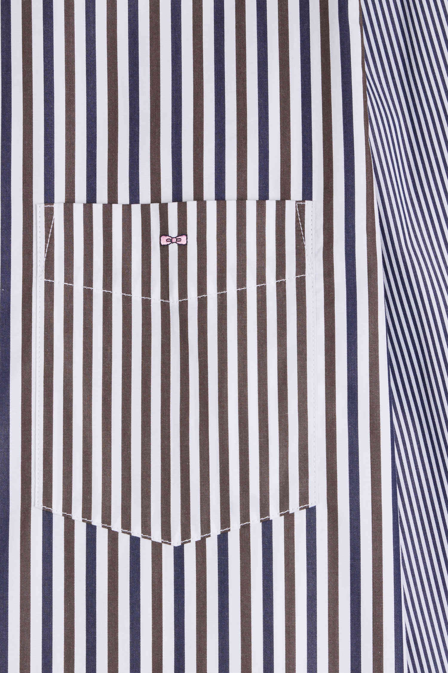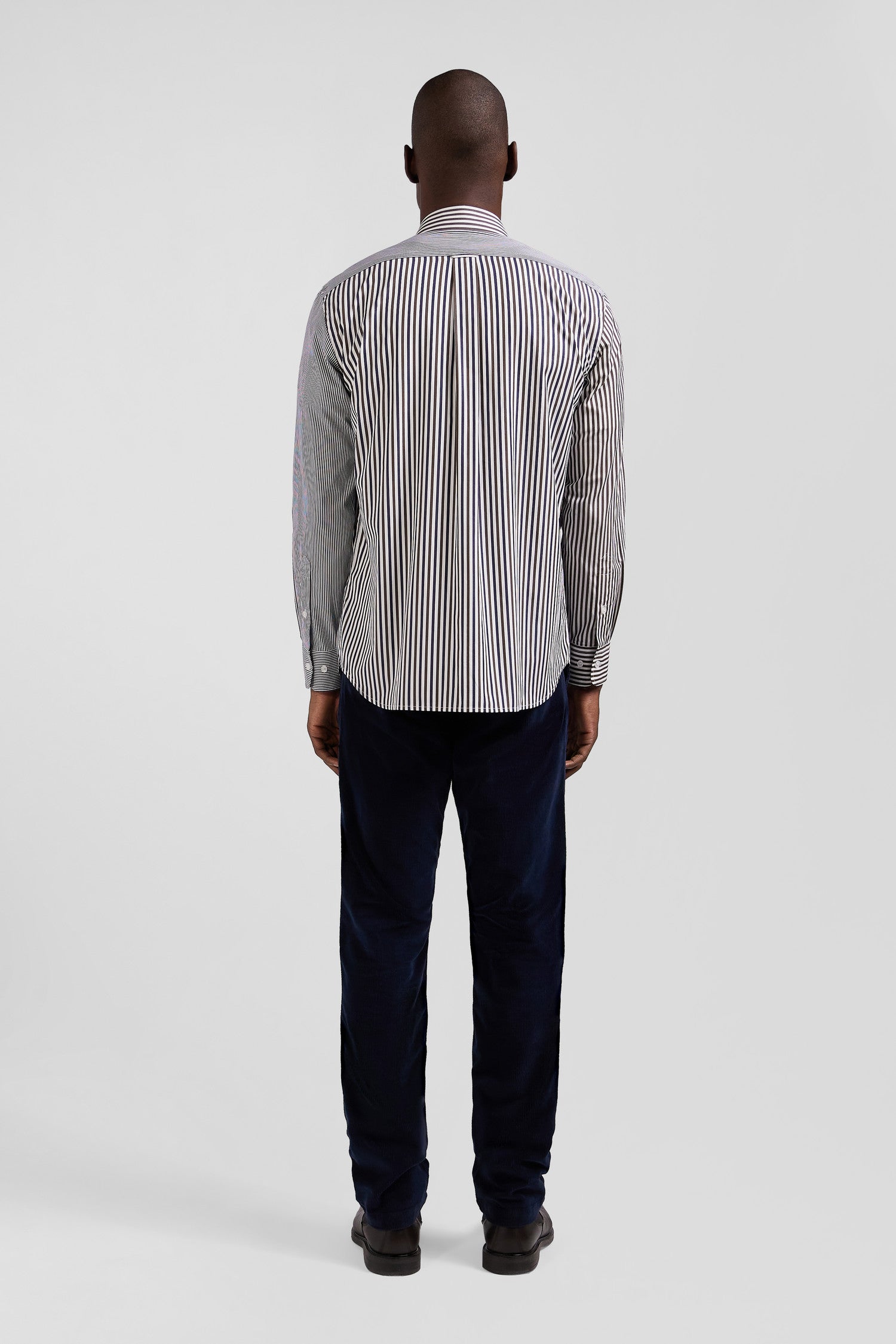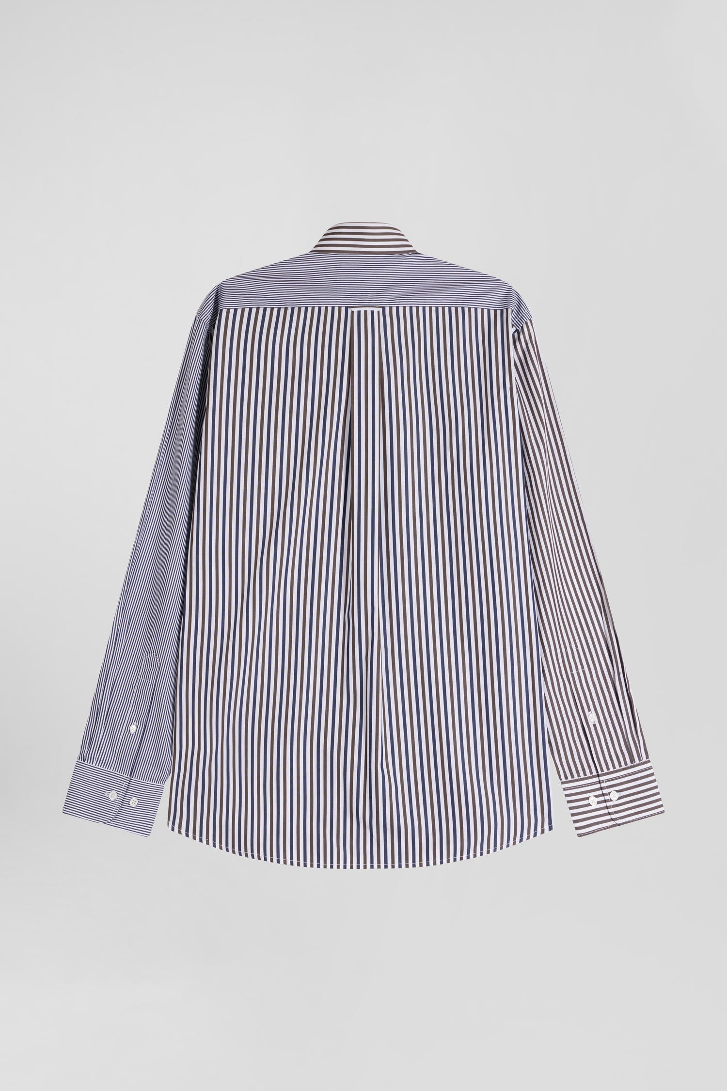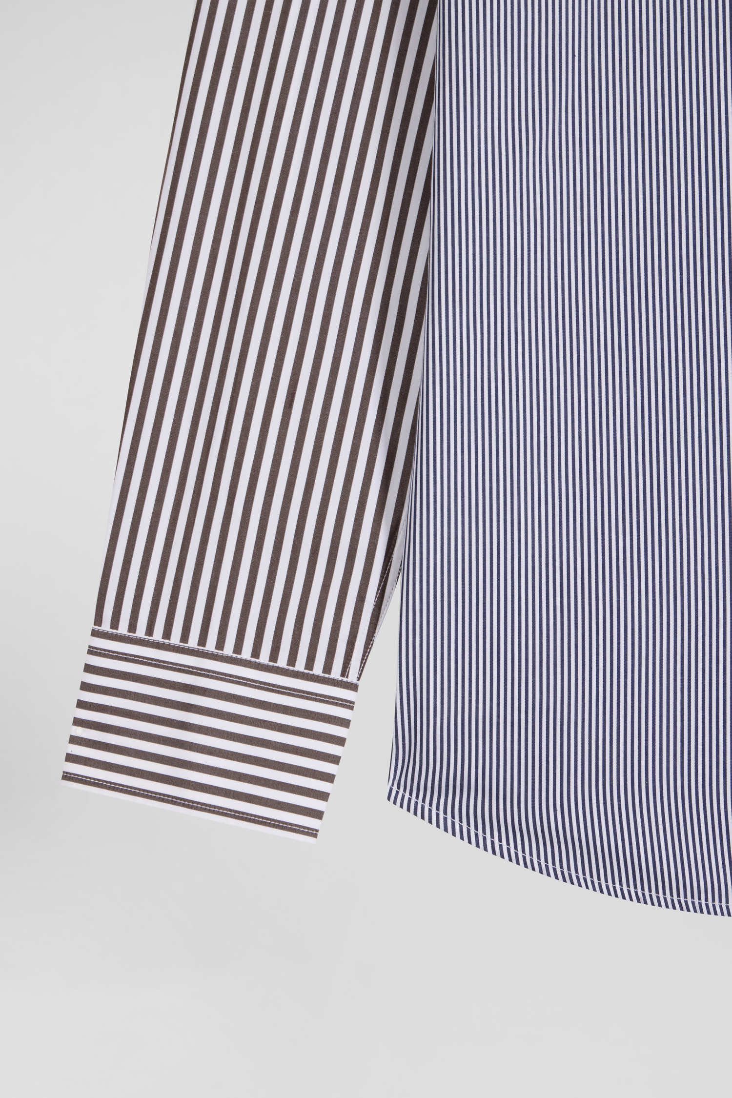 Chemise en popeline de coton marron rayures mix and match coupe Regular