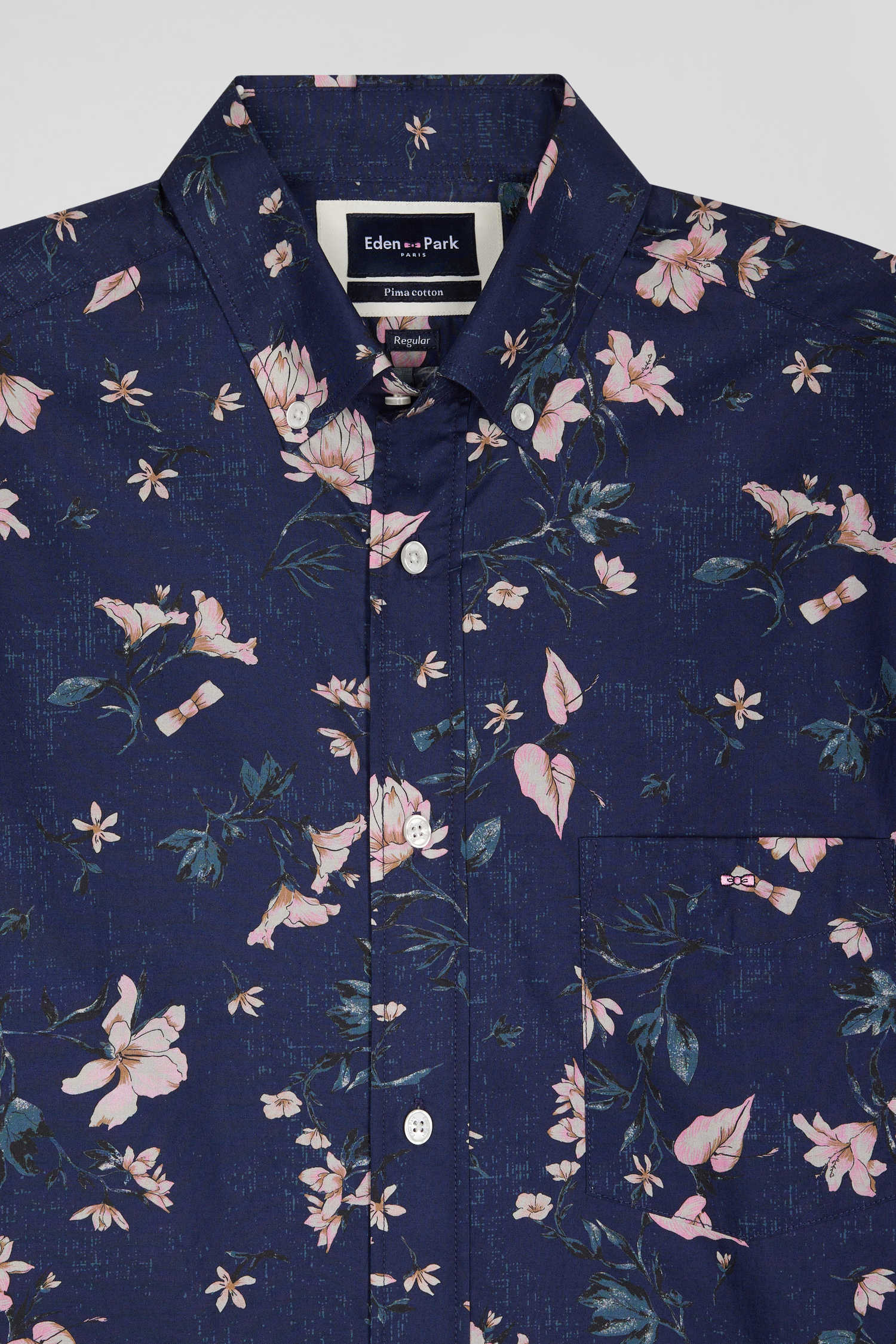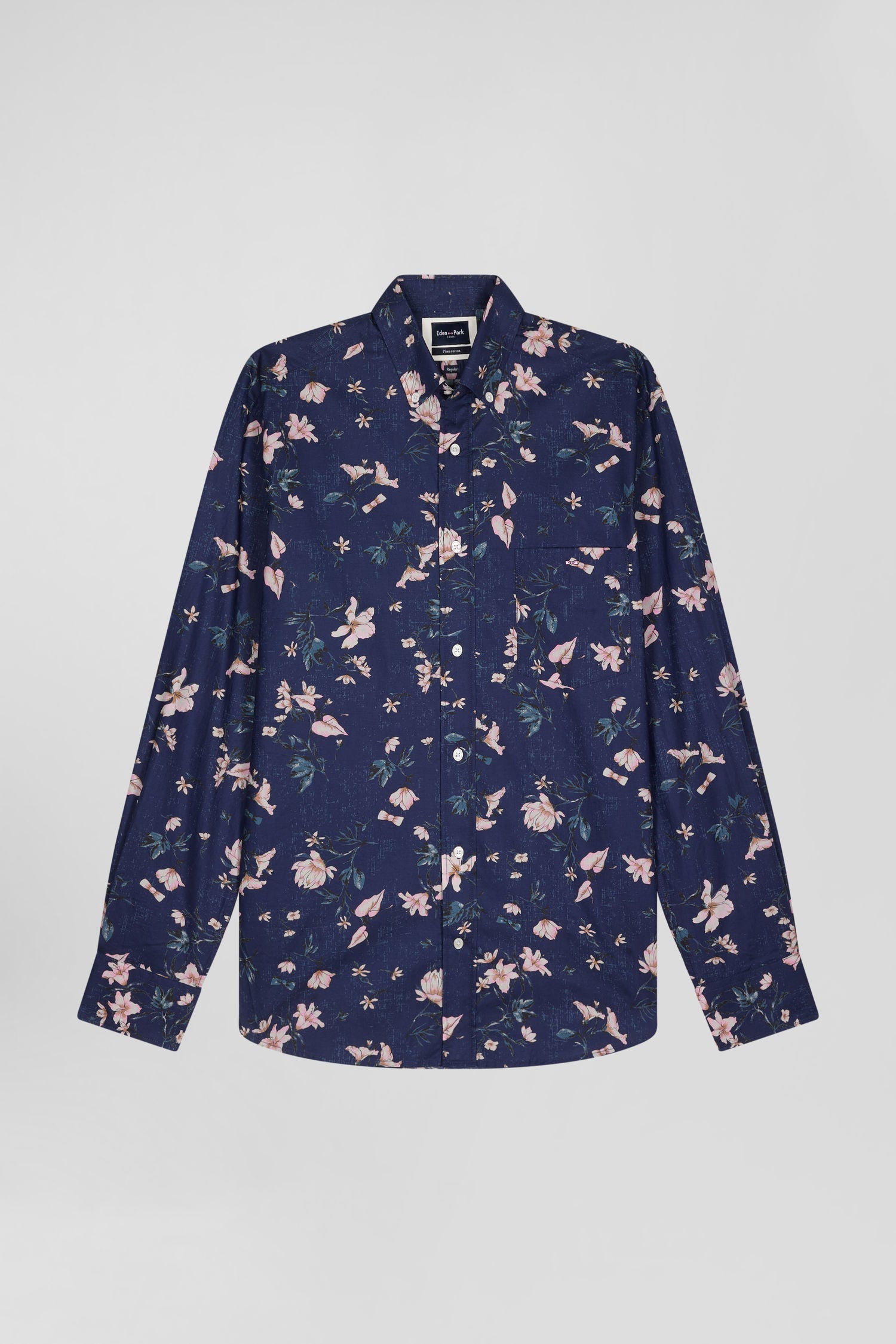 Découvrez notre chemise en popeline de coton Pima, un coton durable haut de gamme tissé avec précision pour offrir douceur et confort. Ornée d'un imprimé floral exclusif à notre Maison, cette pièce au design vibrant ajoute une touche d'élégance audacieuse à votre vestiaire. Cette chemise homme marine présente un col à pointes boutonnées, soulignant une silhouette moderne accentuée par sa coupe droite.
