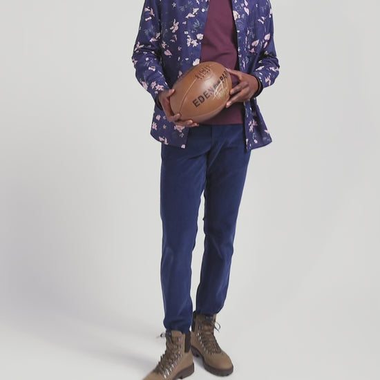 Pantalon chino en coton velours stretch bleu coupe Regular