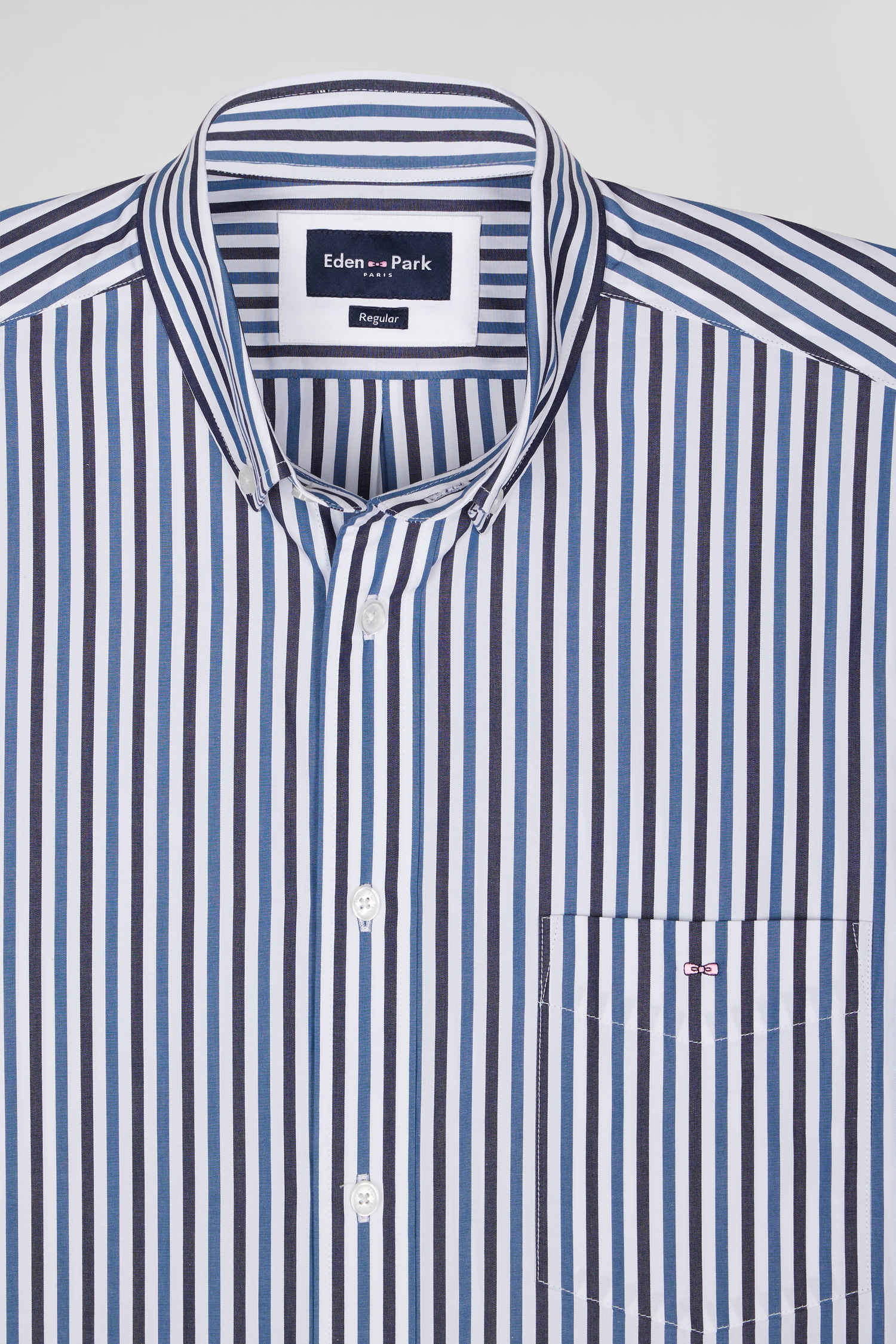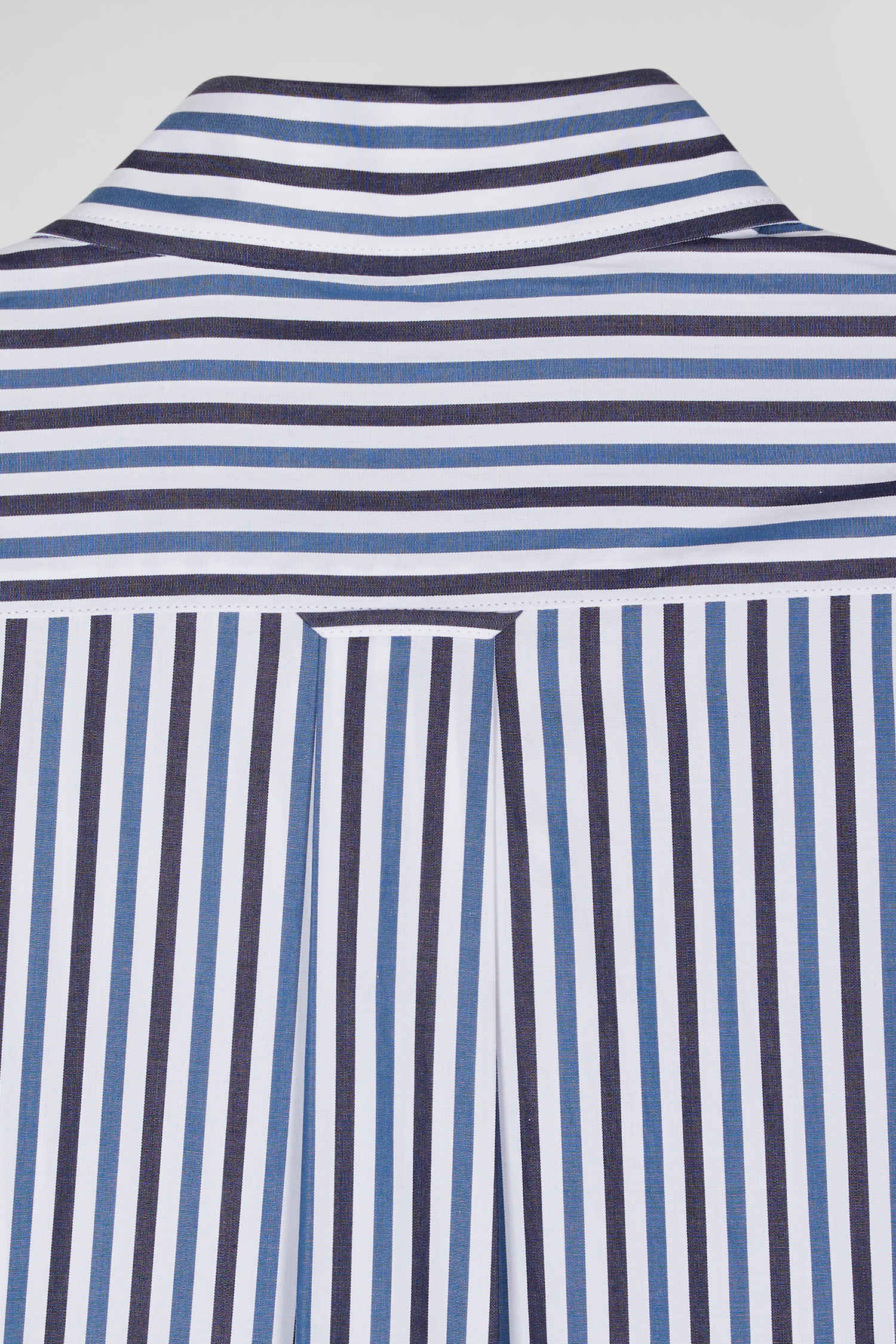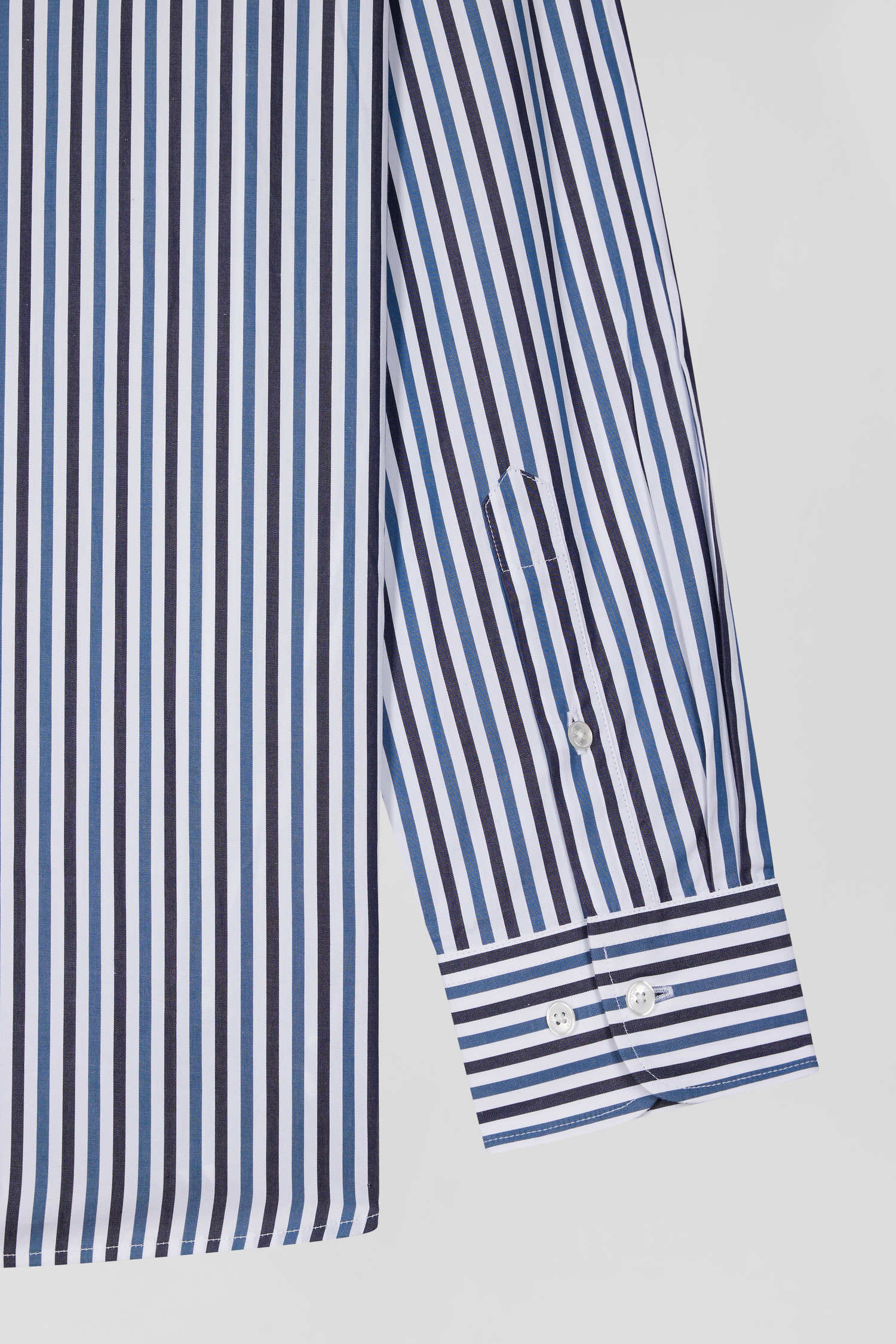 Chemise en popeline de coton rayée bleu foncé coupe Regular