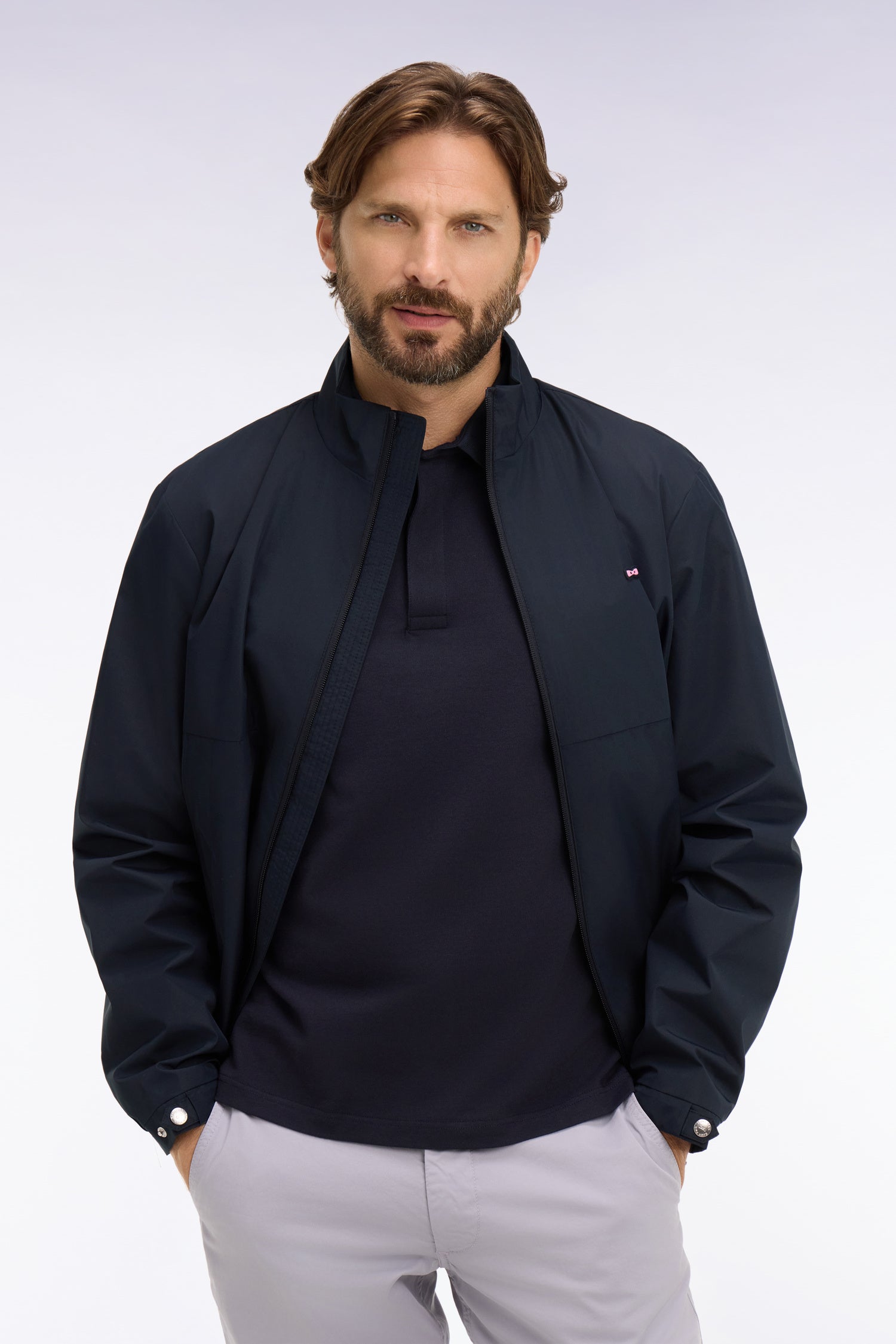 Ce coupe-vent en nylon marine est conçu pour allier style, légèreté et protection au quotidien. Doublé à moitié en nylon rayé dans un camaïeu et à moitié en mesh il promet plus de confort et une meilleure respiration. Ce blouson coupe-vent présente des détails et finitions soignés comme le nœud papillon Eden Park en gomme, ses découpes sur l'avant et au dos et son col montant. Une pièce d'entrée de saison pour un style urbain et fonctionnel dans un coloris intemporel qui s'accorde avec un vestiaire de printemps comme d'automne.