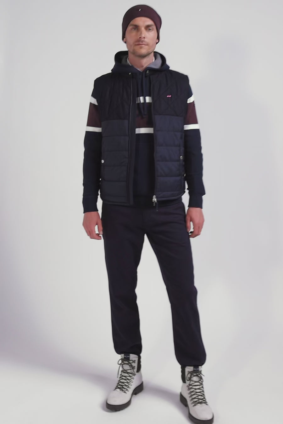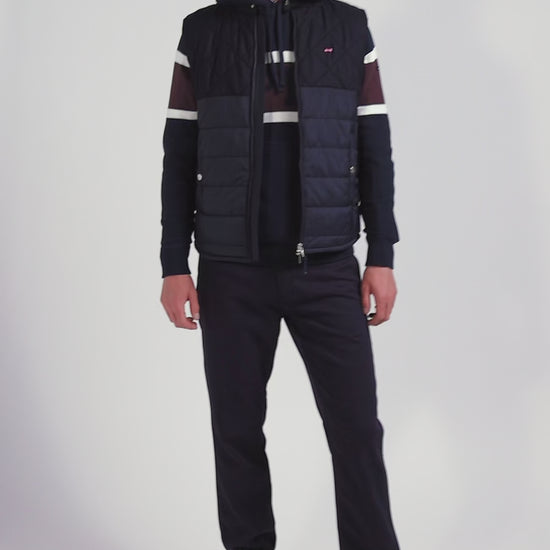Distinguez-vous avec élégance grâce à cette doudoune sans manches homme, qui revisite l'élégance urbaine. Avec son col motard et ses matelassages mixtes, elle combine la douceur de la flanelle et la robustesse du nylon. Le confort est garanti par la doublure lisse et le double zip siglé offre une touche personnalisée. Fonctionnelles, ses poches extérieures à pression et intérieures à scratch sont aussi pratiques que discrètes. Sa broderie nœud papillon signe ce design de l'emblématique style Eden Park avec finesse.