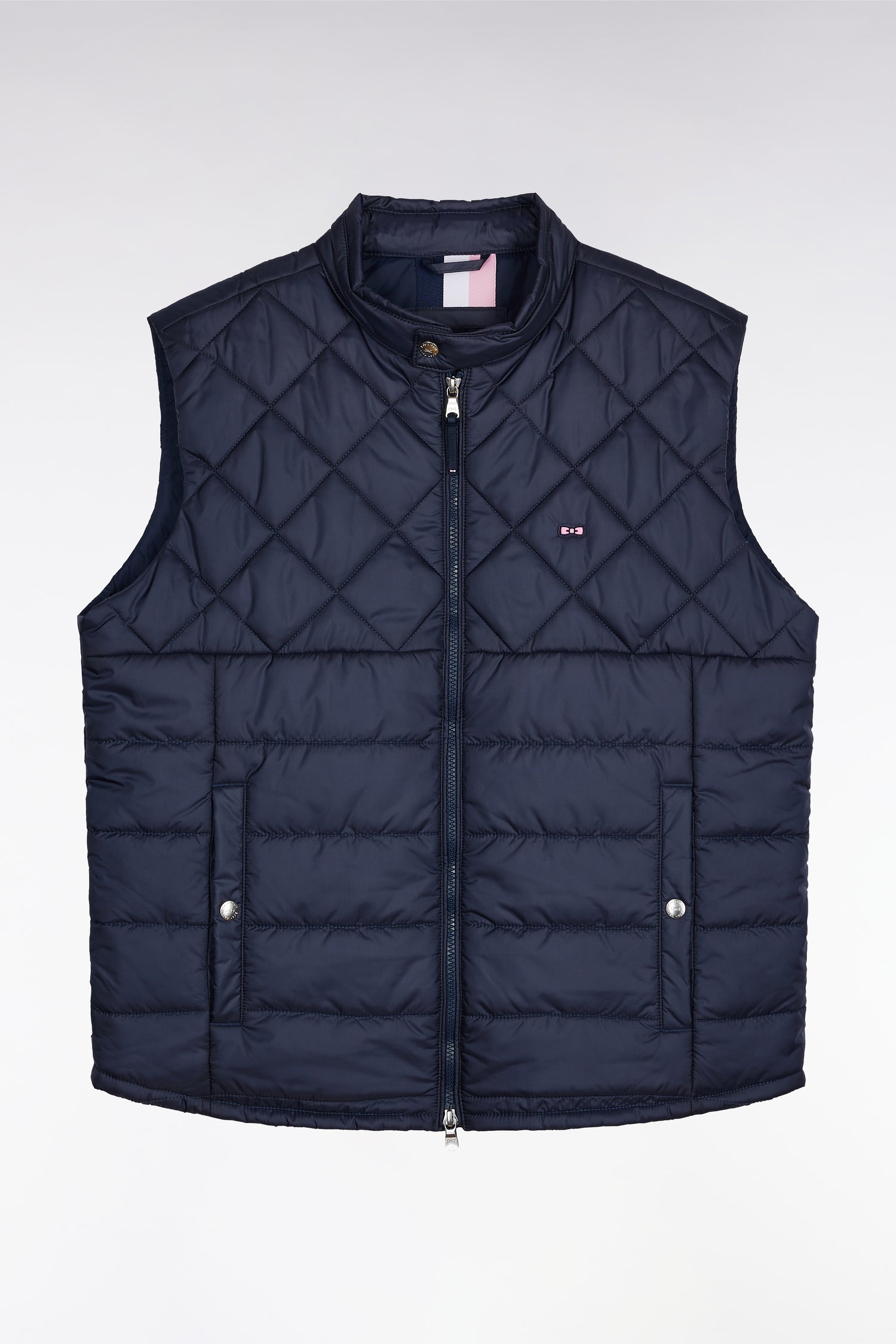 Doudoune sans manches col motard en nylon matelassé bleu marine