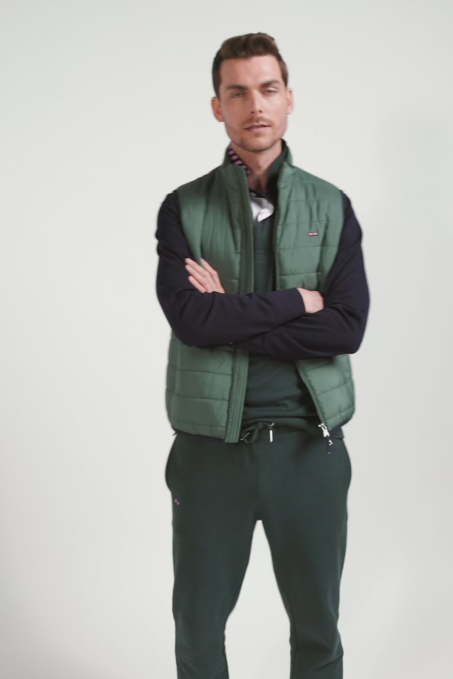 Doudoune sans manches matelassée à col montant vert
