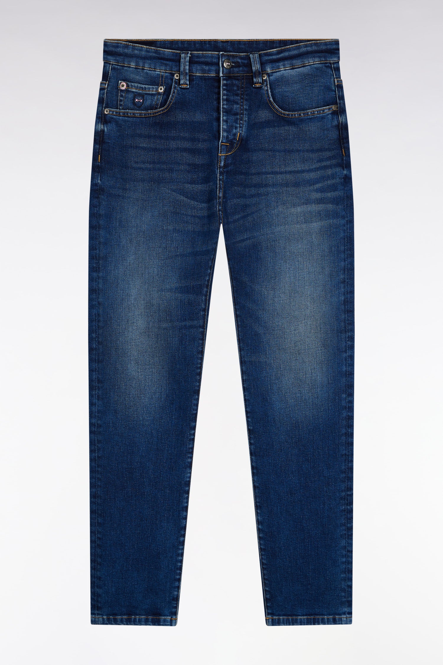 Ce jean homme en denim stretch associe confort et modernité avec sa coupe Slim ajustée qui allonge la silhouette sans contraindre le mouvement. Sa toile bleu au fini net très légèrement délavée lui donne une allure affirmée, idéale pour composer une silhouette urbaine. Ses finitions signature rappellent l'ADN French Flaire de notre Maison française