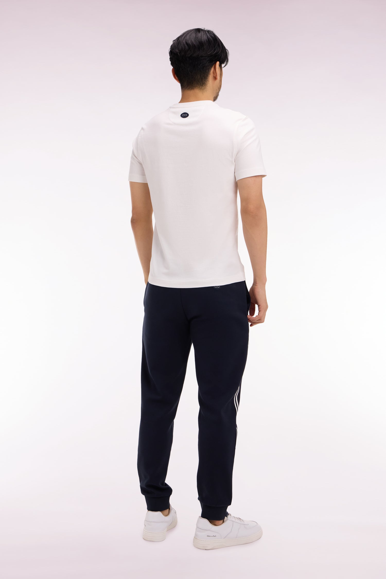 Notre jogging homme en molleton marine est rehaussé de découpes contrastées le long de la jambe. Sa coupe droite, sa taille élastique avec cordons de resserrage siglés, et son badge gomme en font une pièce sportive parfaite pour une tenue de détente travaillé, porté seul ou avec un sweatshirt.