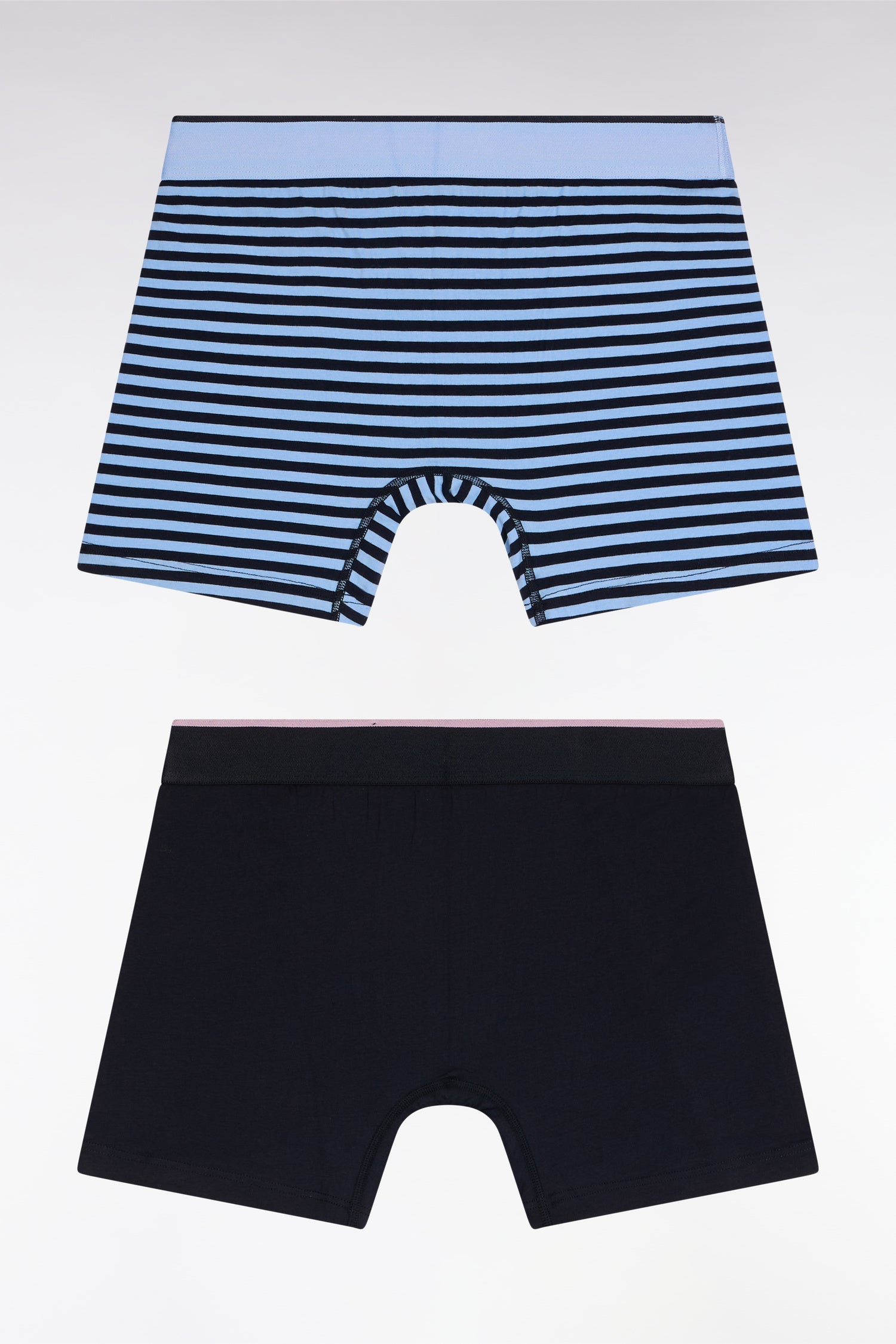 Lot de deux boxers en jersey de coton stretch marine et ciel